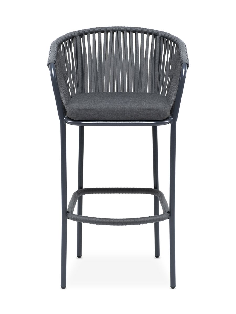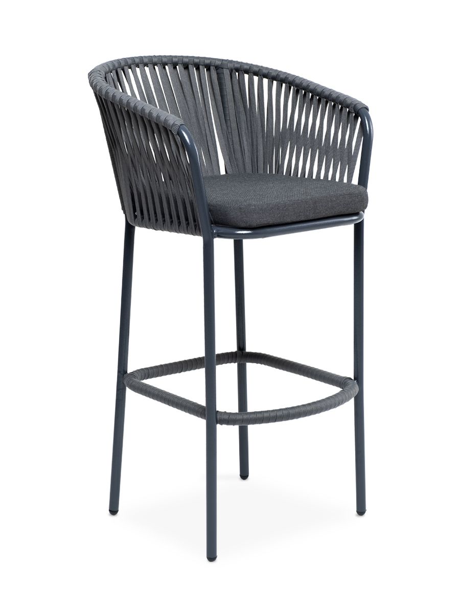 "Бордо" стул барный плетеный из роупа, каркас из стали темно-серый (RAL7024) муар, роуп серый 15мм,