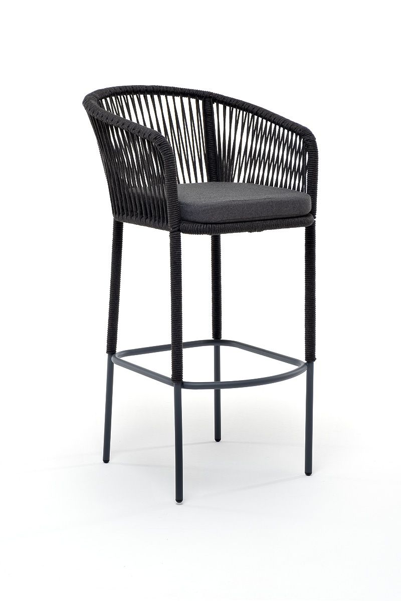 • "Марсель" стул барный плетеный из роупа, каркас из стали темно-серый (RAL7024) муар, роуп темно-серы - 7
