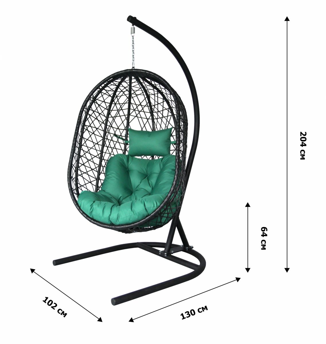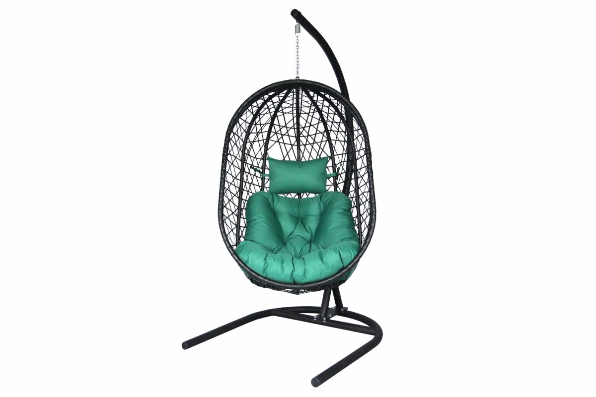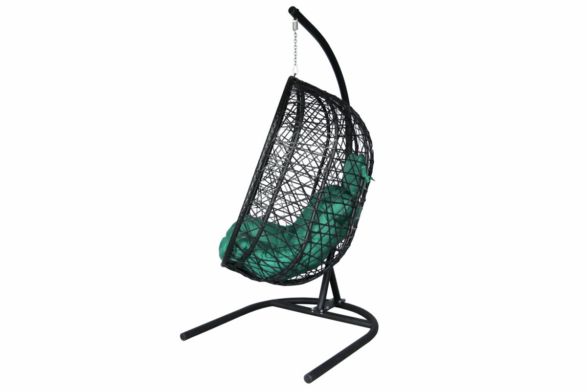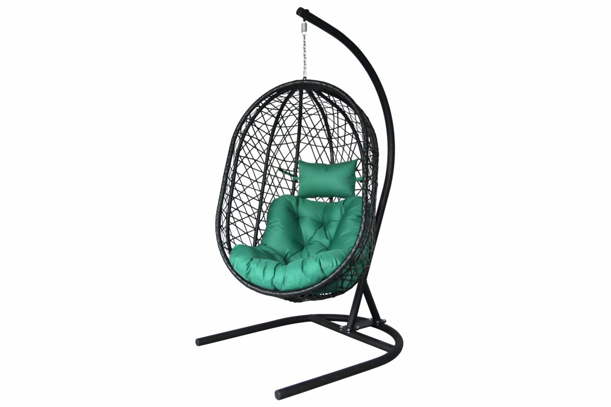 Кресло подвесное Кокон XL арт.D82-MT025 (стойка+основание.черн.,корзн.черн.,подуш тём-зеленый. 3уп.