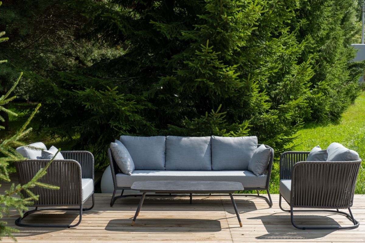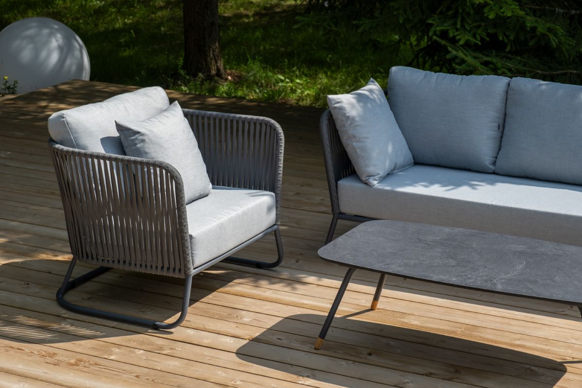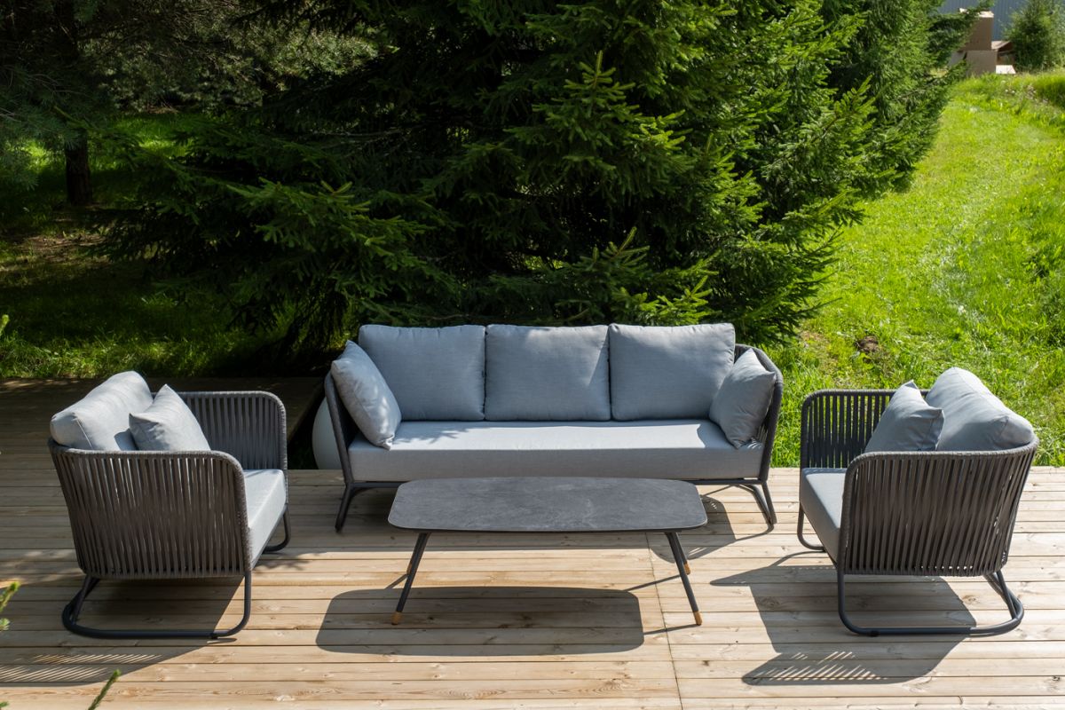 4. "Багамы" лаунж-зона 5-местная плетеная из роупа (веревки), каркас алюминиевый темно-серый, роуп серы