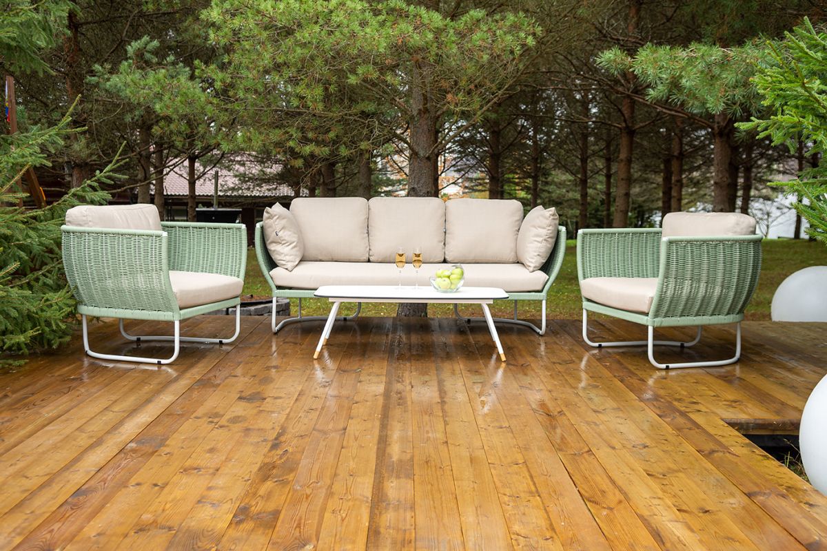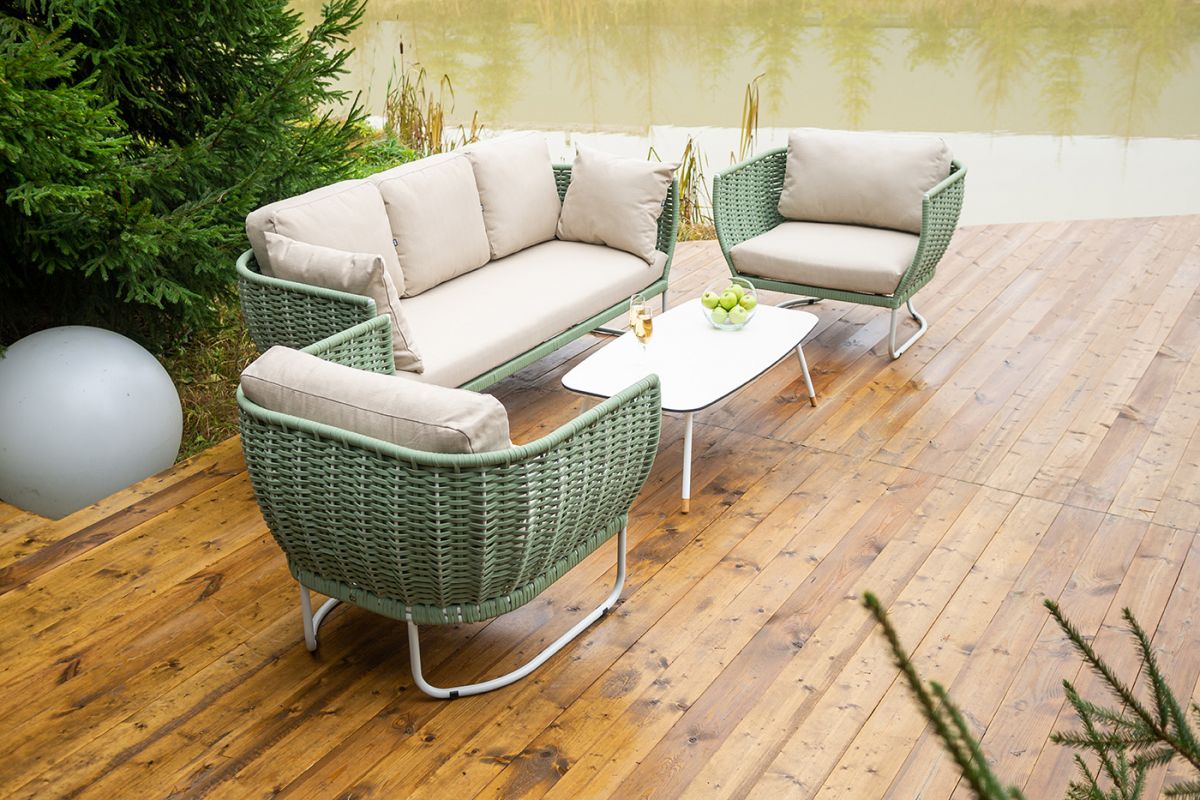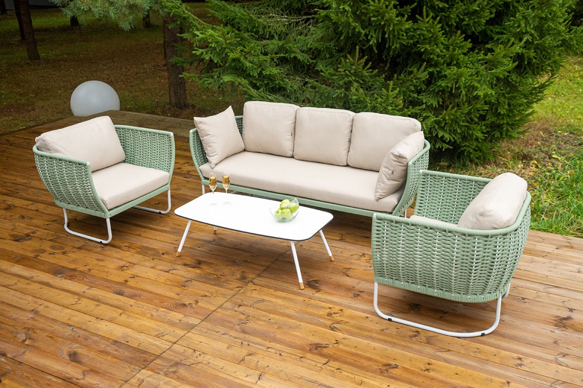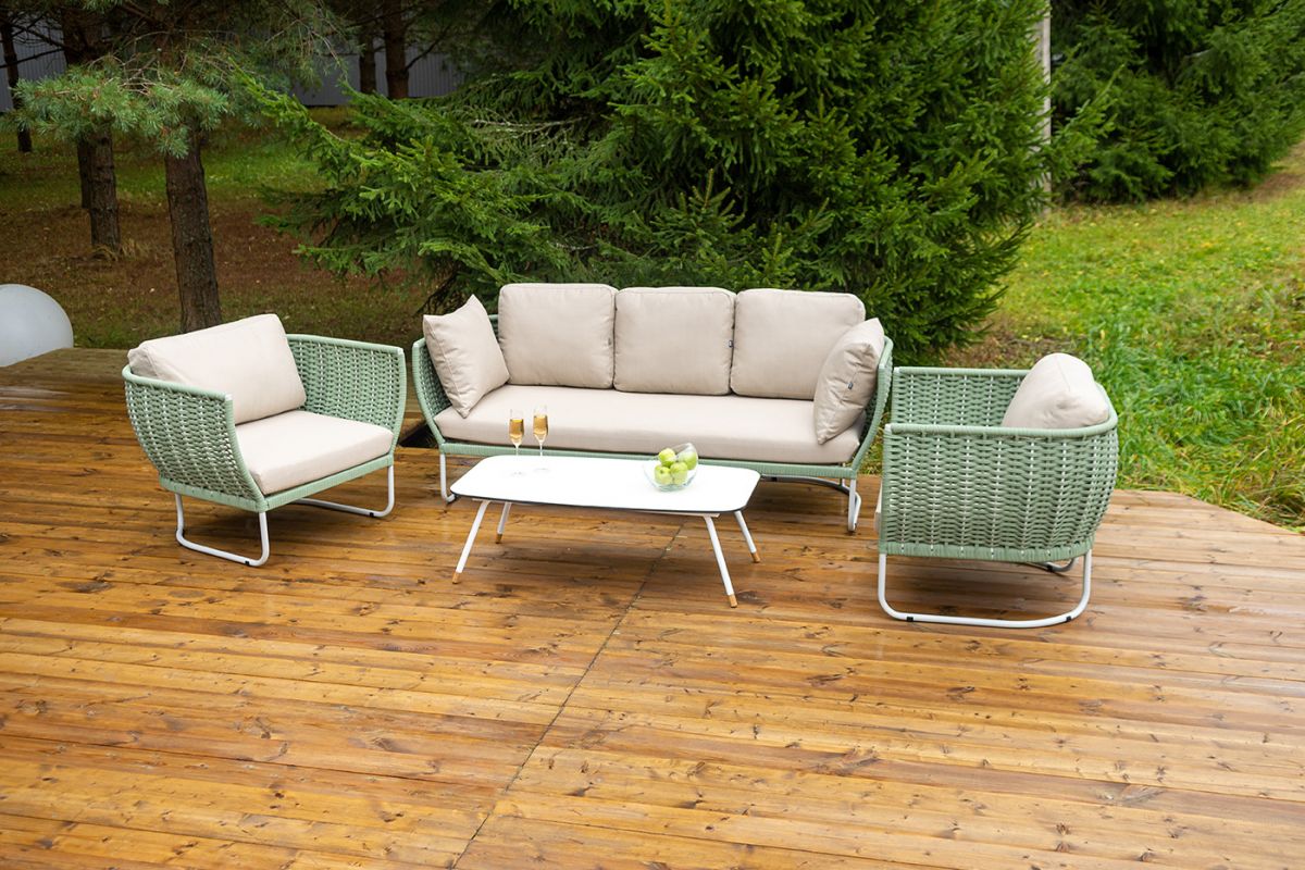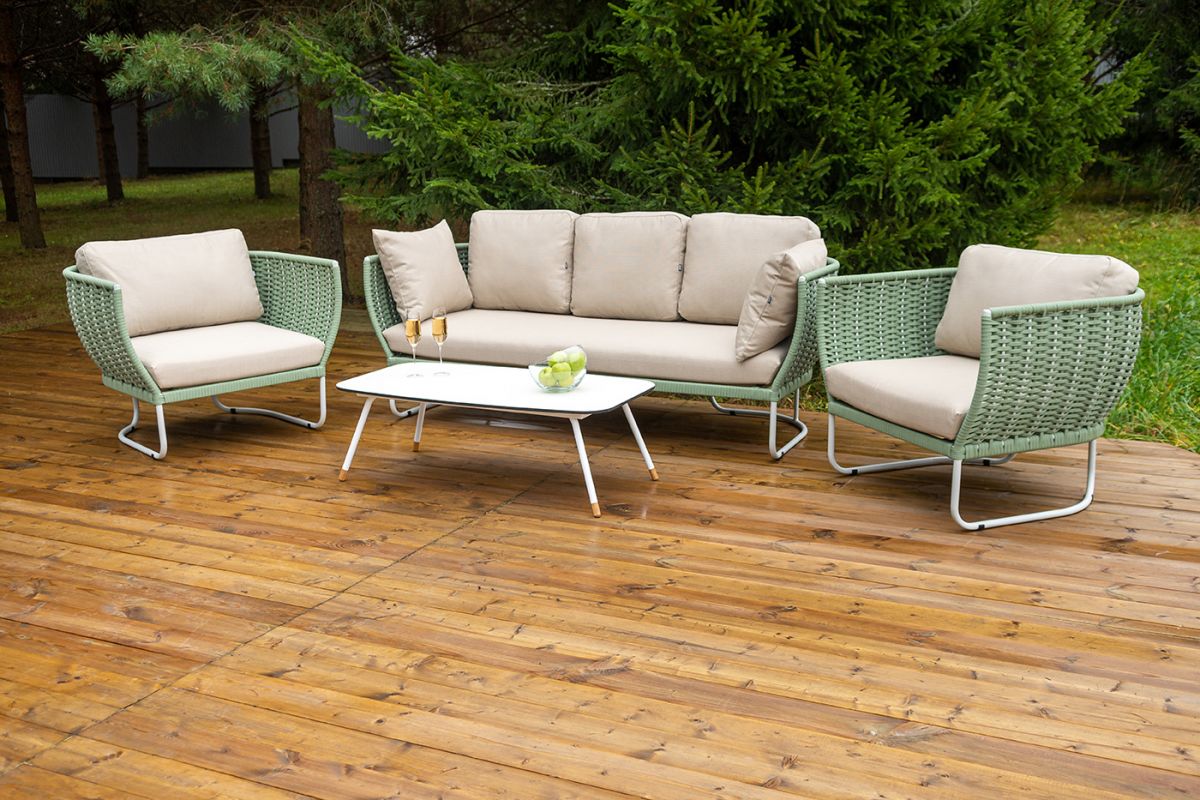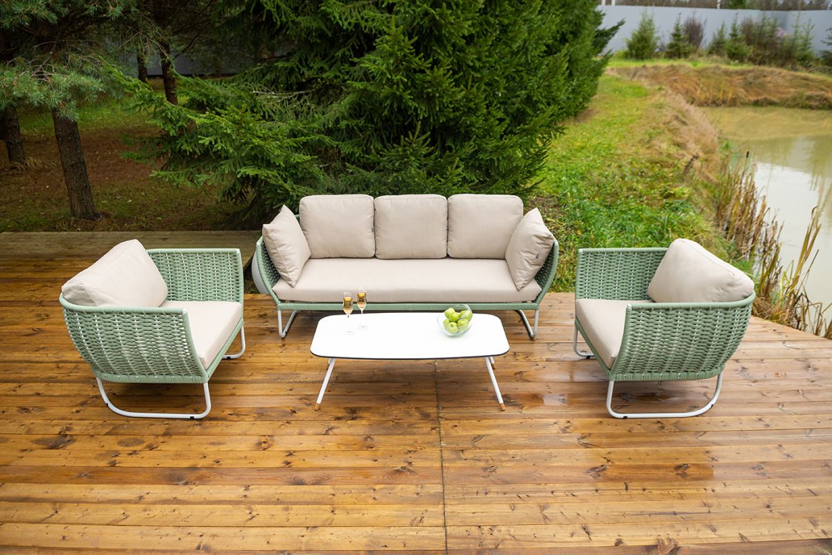 4. "Фиджи" лаунж-зона 5-местная плетеная из роупа (веревки), каркас алюминиевый светло-серый, роуп зеле