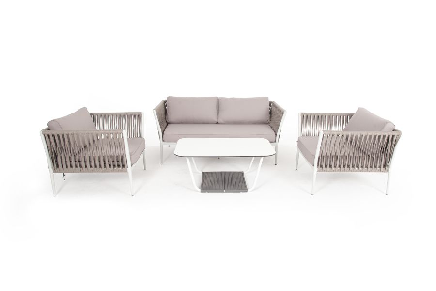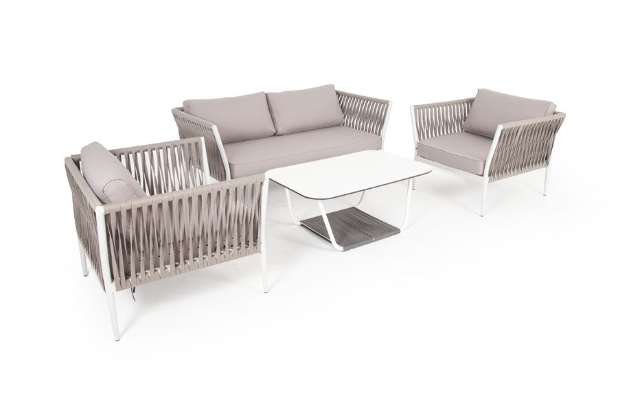 "Касабланка" лаунж-зона плетеная из роупа 4-местная, цвет серо-коричневый, бежевый.
