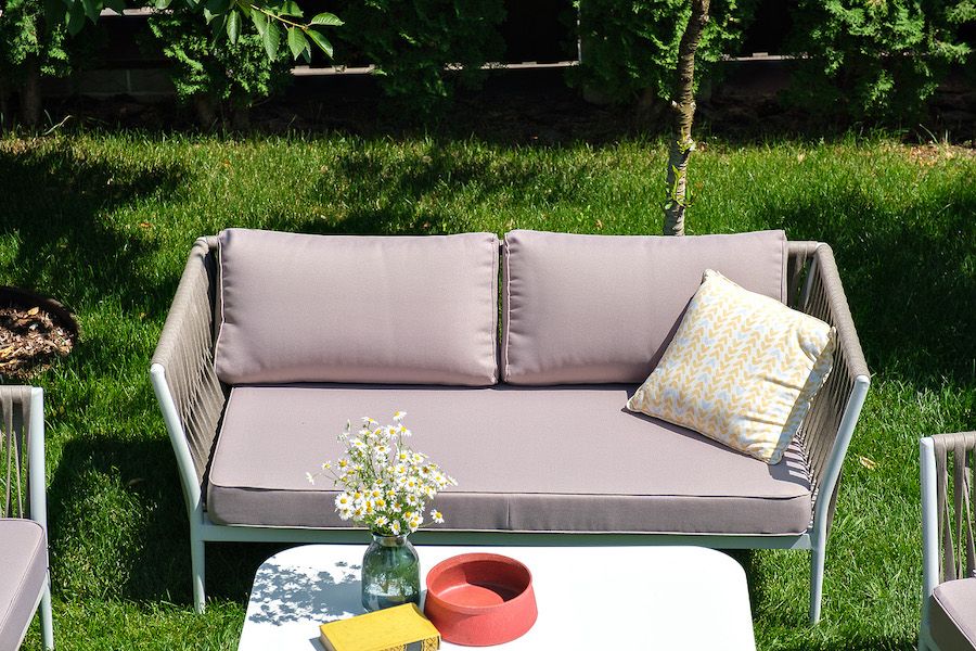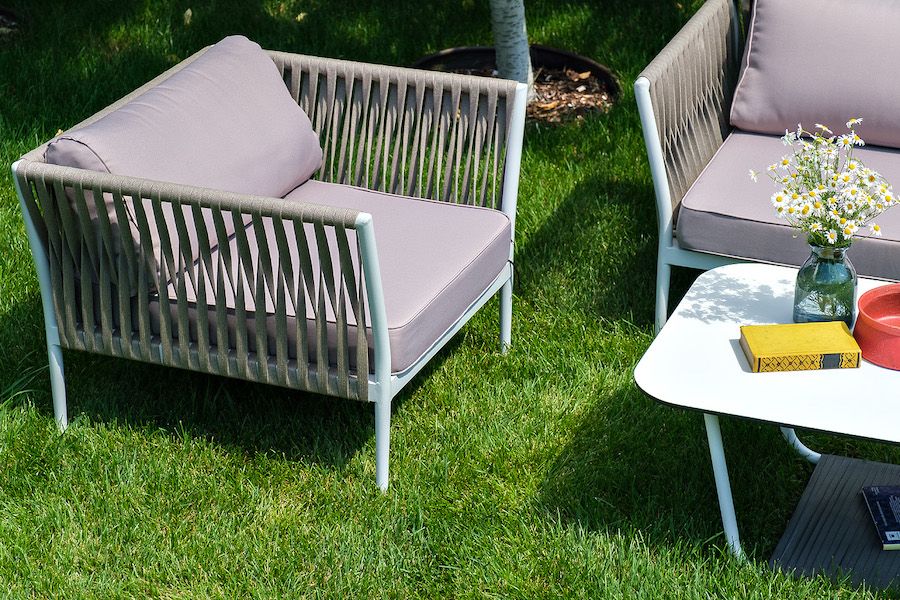 Лаунж-зона "Касабланка" расчитана на размещение 4-х персон. Состоит из: - двухместного дивана - 1600×800×695 мм - двух кресел - 900×800×695 мм каждое - журнального столика - 1000×650×420 мм Диван и кресла изготовлены их алюминиевого прочного каркаса, оплетенного ручным способом роупом серо-коричневого цвета. Это эластичные ленты из полиэфирных волокон высокого качества. Каркас окрашен в белый цвет износостойкой порошковой краской. Журнальный столик также имеет алюминиевый каркас белого цвета. Столешница выполнена из монолитного компакт-пластика HPL молочного оттенка. Нижняя часть столика задекорирована роупом серого цвета и представляет дополнительную полку для хранения. "Касабланка" диван 2-местный плетеный из роупа, каркас алюминий белый муар, роуп бежевый 20мм, ткань бежевая 035 1шт. 1 600Х800Х695, "Касабланка" кресло плетеное из роупа, каркас алюминий белый муар, роуп бежевый 20мм, ткань бежевая 035 2шт. 900Х800Х695, "Глория" журнальный стол 100х65см из HPL, цвет
