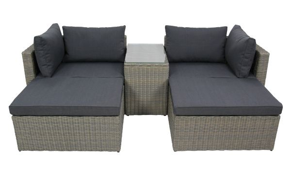 5. Набор мебели Драмен арт.GS009 серо-коричневый, серый 1 уп. (стол, 2 угл.кресла, 2 пуфа, ротанг серо