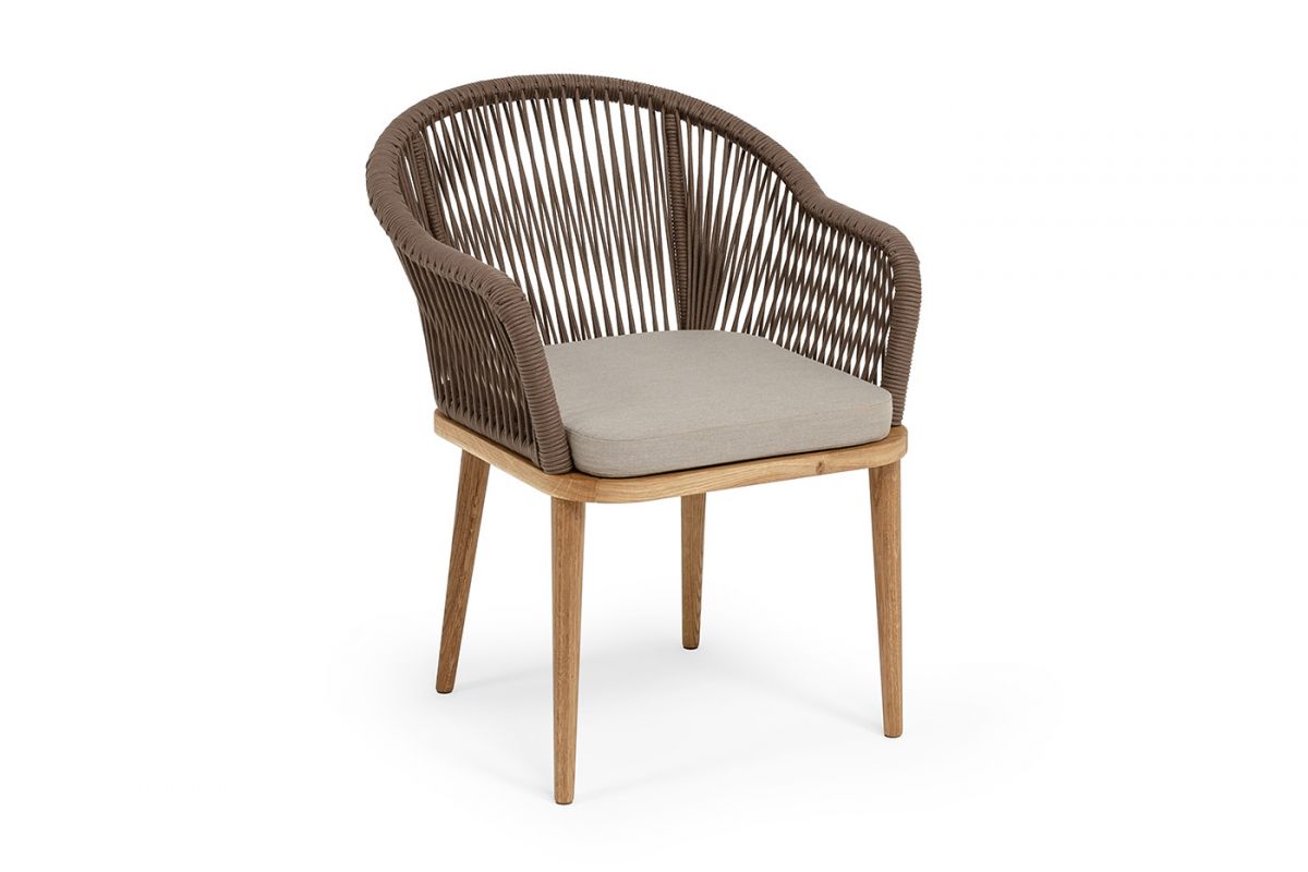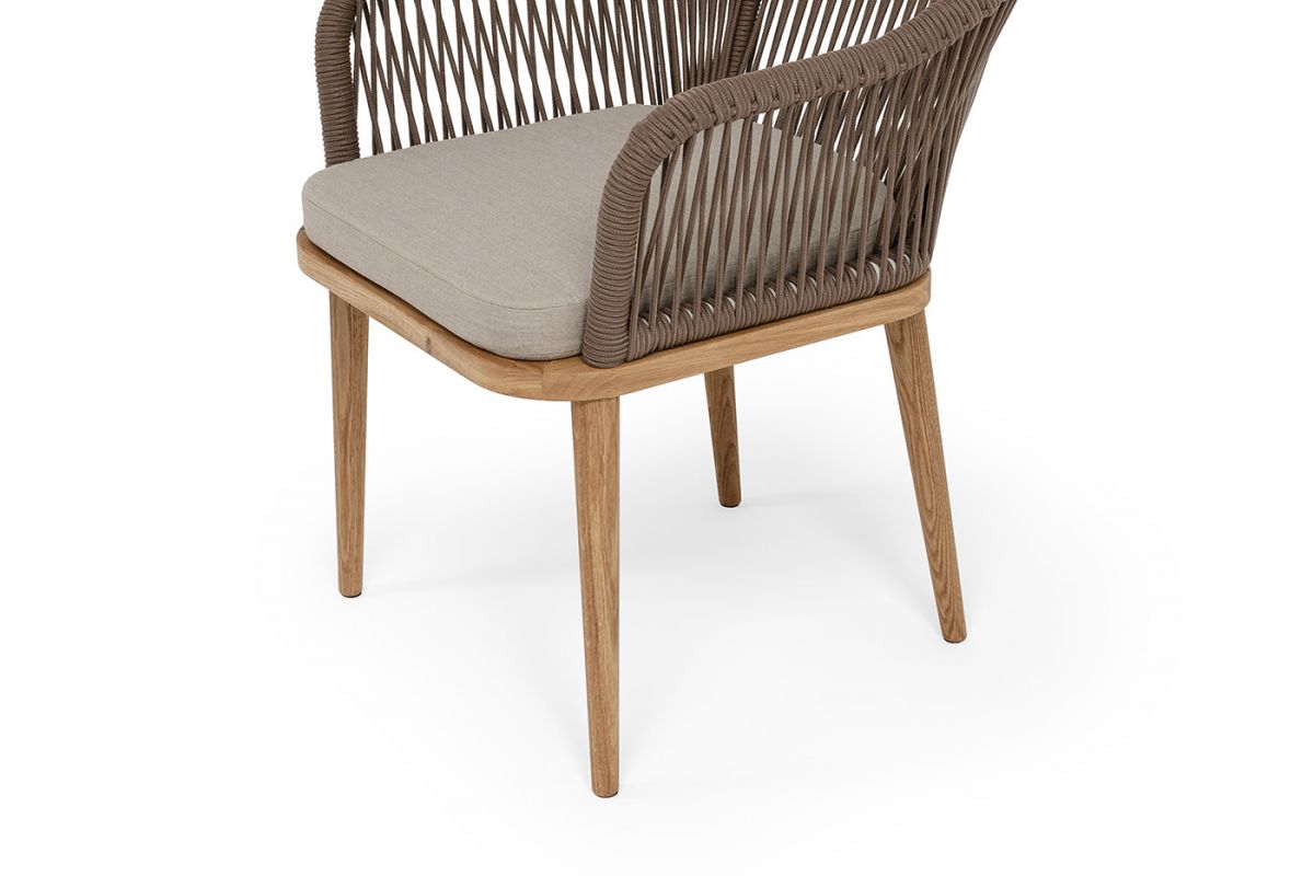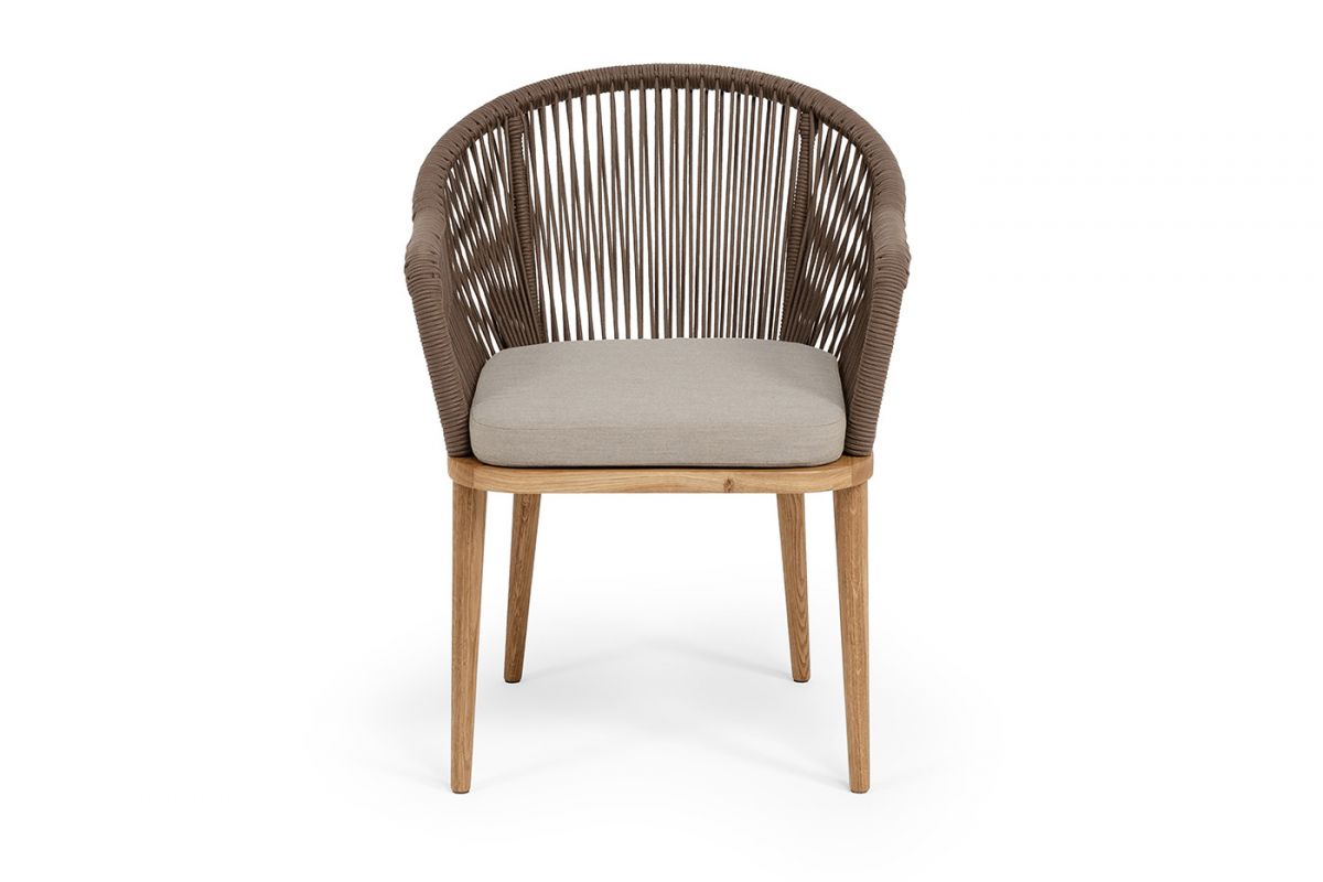• "Лион" стул плетеный из роупа, основание дуб, роуп коричневый круглый, ткань бежевая 15052 - 4