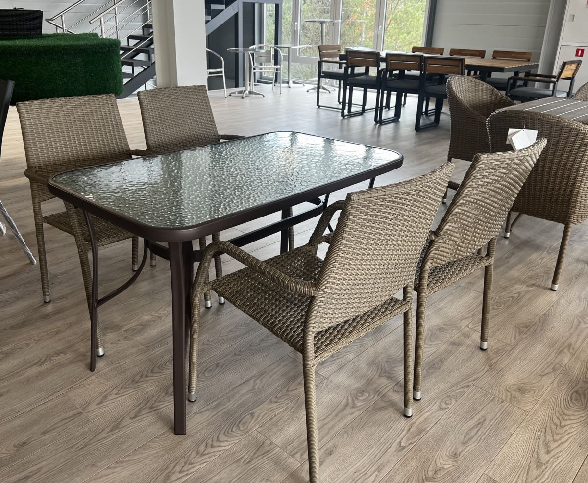 5. Набор мебели Гарда арт.GS019-2,SC-090-B светло-коричневый, (4 кресла+стол 70х120 см, каркас корич.