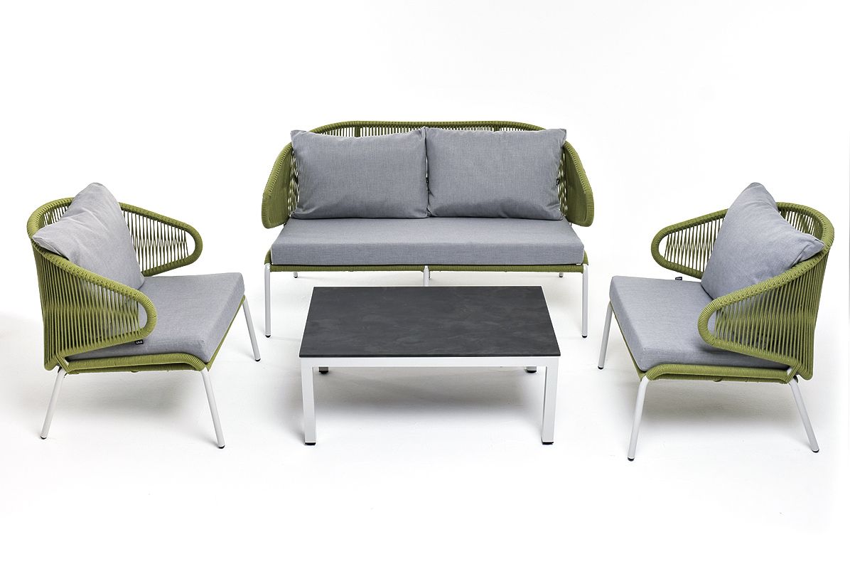 "Милан" лаунж-зона 4-местная плетеная из роупа (веревки), каркас алюминиевый светло-серый, роуп сала
