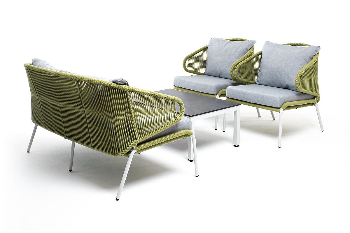• "Милан" лаунж-зона 4-местная плетеная из роупа (веревки), каркас алюминиевый светло-серый, роуп сала - 4
