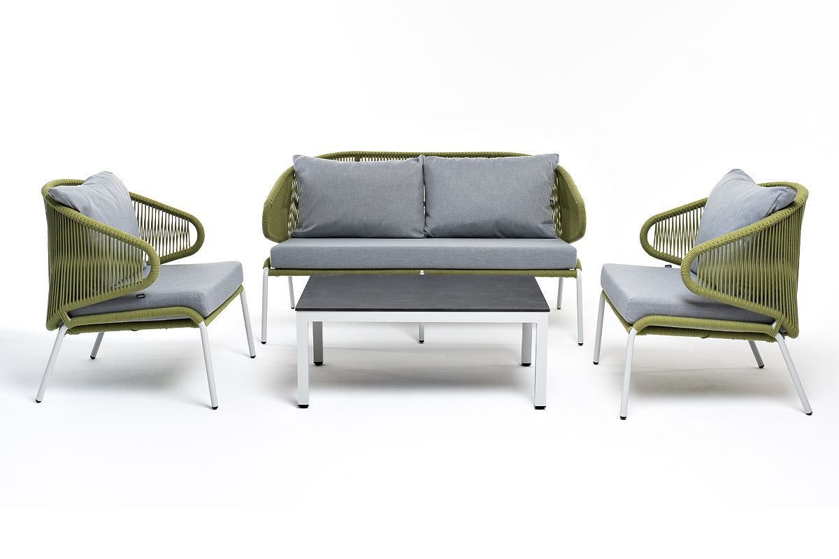 4. "Милан" лаунж-зона 4-местная плетеная из роупа (веревки), каркас алюминиевый светло-серый, роуп сала
