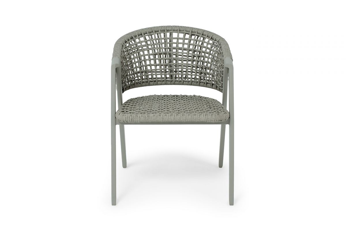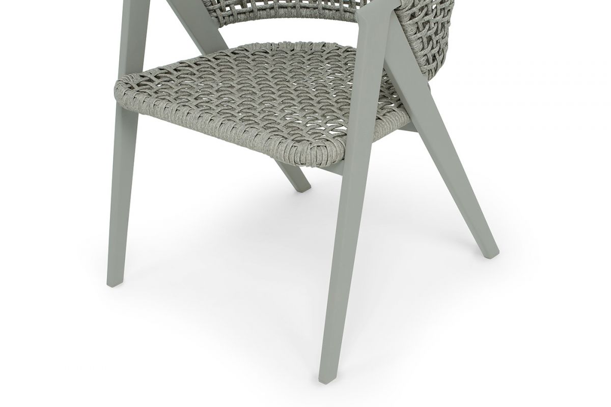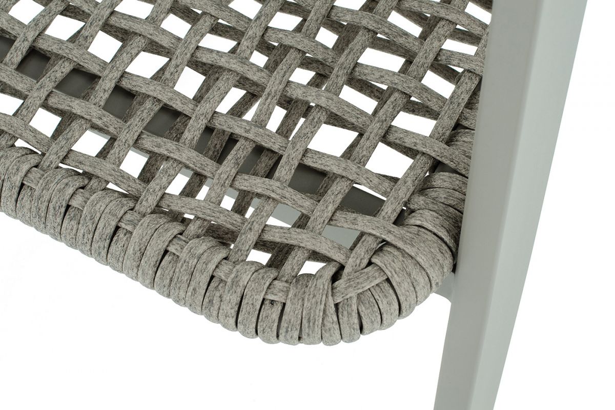 Стул «Амстердам» для обустройства обеденной или лаунж-зоны.Стул выполнен из алюминиевого каркаса, который вручную оплетен круглым искусственным ротангом. Приятный на ощупь и напоминает шерстяное плетение. Цвет каркаса и оплетки – серый. На ножках стула идут серые пластиковые наконечники (заглушки).Размеры плетеного стула: 560×610×750 мм.