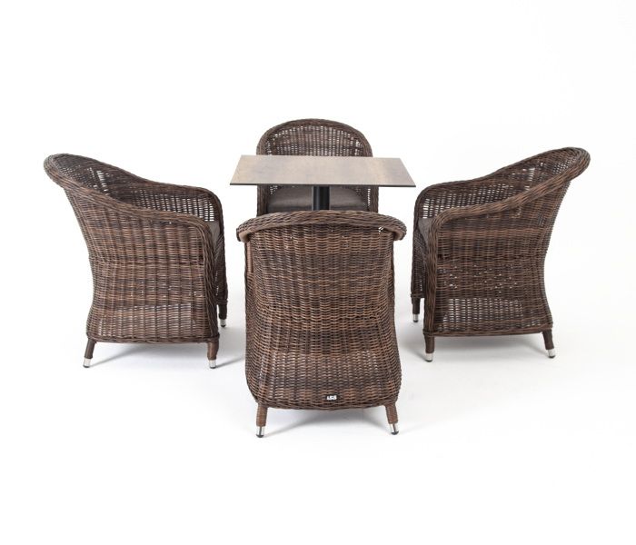 Обеденная группа «Каффе» рассчитана на 4 персоны. В состав комплекта входит: - Стол "Каффе" из HPL, размер столешницы - 70х70 см, цвет "дуб" - 4 плетеных кресла "Равенна" из искусственного ротанга, размером - 680×570×810 мм, цвет - коричневый "Каффе" интерьерный стол из HPL квадратный 70х70см, цвет "дуб" 1шт. 700Х700Х750, "Равенна" плетеное кресло из искусственного ротанга, цвет коричневый с серой подушкой 4шт. 570Х680Х810,