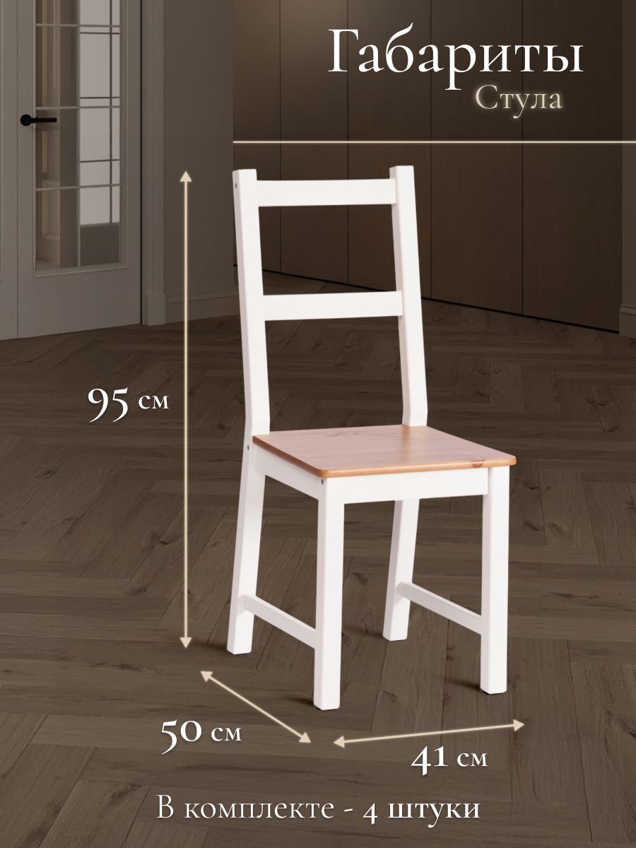 массив сосны, стол: 120х75х73см стул :41х50х95см, антик/белый Обеденный комплект Соната из Дельфийской коллекции — это стильный и функциональный элемент интерьера вашей кухни или столовой. В комплект входят стол и четыре стула с прочным и долговечным каркасом из массива сосны. Античный оттенок столешницы и сидений стульев в сочетании с белым цветом придаёт интерьеру элегантность. Этот комплект будет хорошо смотреться как в городской квартире, так и в загородном доме, в столовой или на кухне, на террасе или веранде. Он позволяет разместить до четырёх человек и подходит для комфортного и длительного времяпрепровождения. Мебель поставляется в разобранном виде и легко собирается согласно инструкции.