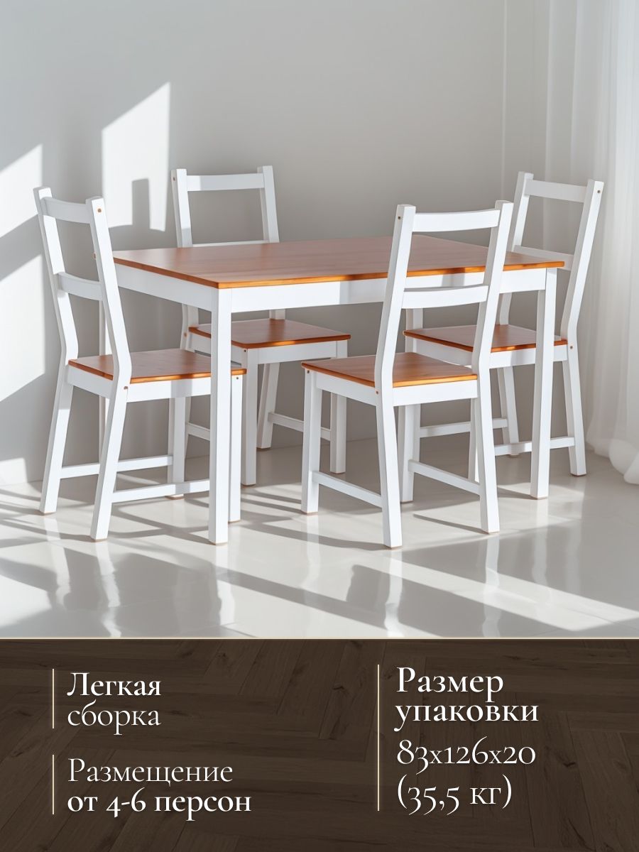 • Обеденный комплект Соната (стол + 4 стула) - Sonata dining set массив сосны, стол: 120х75х73см стул - 6