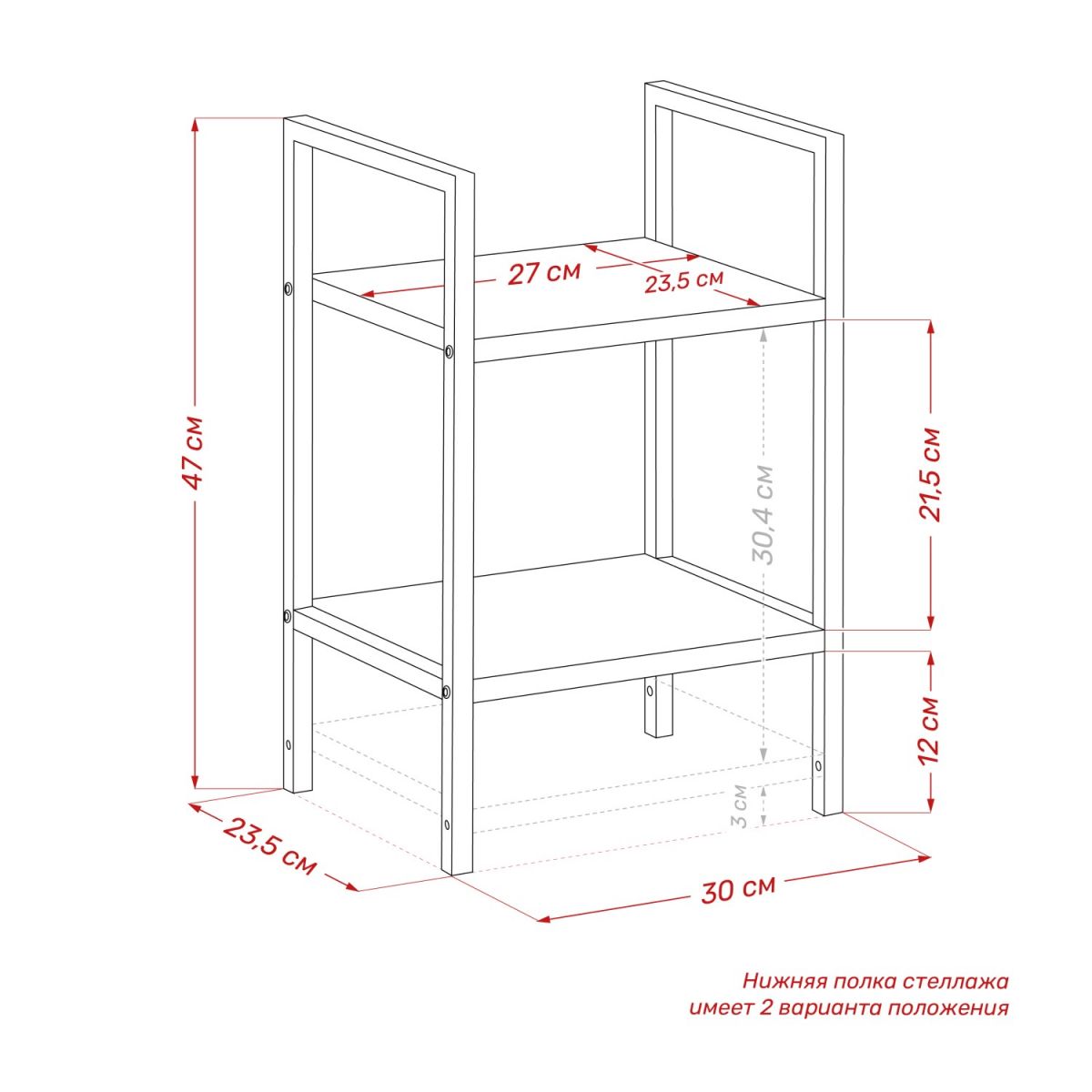 Компактный стеллаж Leset Стилвуд на двух полках — простое и надежное решение для дома и офиса. Каркас из металлического профиля 1,5 см (толщина 0,1 см) с порошковым покрытием гарантирует устойчивость и защиту от коррозии, а строгие прямые линии впишутся в любой интерьер — от минимализма до лофта. Нижняя полка крепится на разных высотах, что позволяет адаптировать стеллаж под книги, технику или корзины. Полки из ЛДСП толщиной 1,6 см легко чистятся, устойчивы к царапинам и выдерживают до 20 кг каждая. Маленькая плоская упаковка делает перенос и транспортировку удобными — легко нести в руках. Преимущества: прочность, универсальность, экономия места и аккуратный внешний вид без лишних деталей.