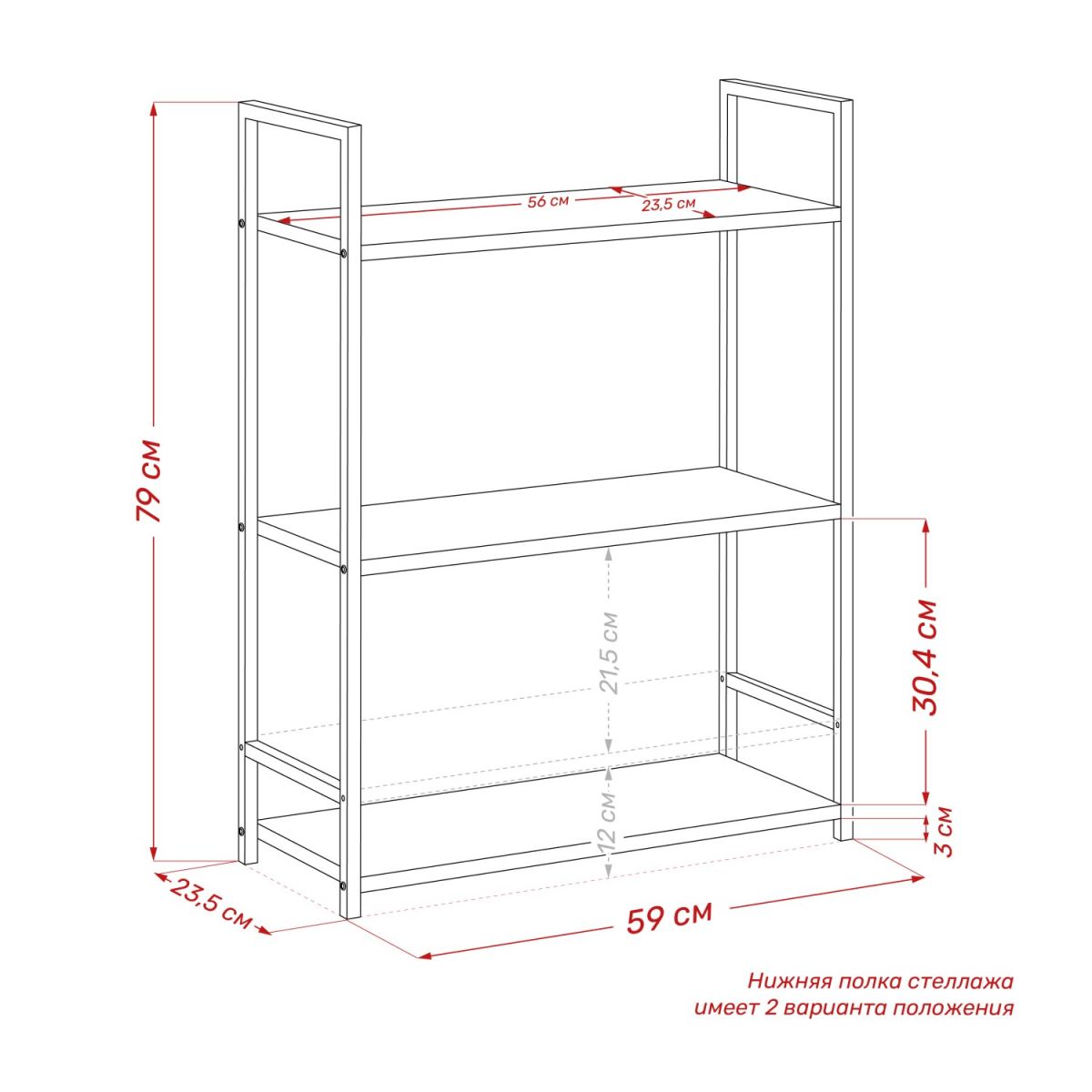 • Стеллаж Leset Стилвуд 23 широкий, 3 полки, Чёрный Чёрный - 6