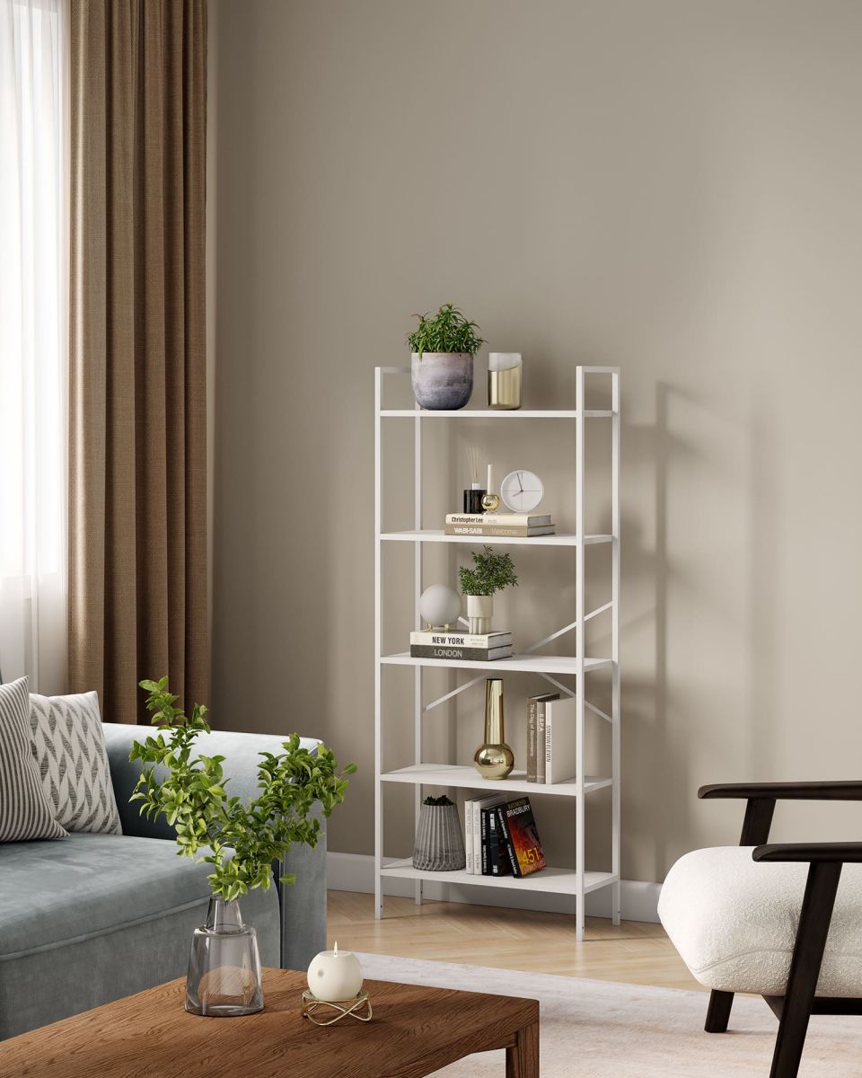 Компактный стеллаж на 5 полок Leset Стилвуд — практичный и стильный элемент для дома и офиса. Каркас из металлического профиля 1,5 см, толщина 0,1 см с порошковым покрытием обеспечивает жёсткость и долговечность; крестовина жесткости и крепление к стене добавляют стабильности и безопасности. Полки из ЛДСП толщиной 1,6 см легко чистятся, устойчивы к царапинам и выдерживают до 20 кг каждая. Нижняя полка имеет возможность крепления на разных высотах — удобно для высоких вещей или создания композиции. Маленькая плоская упаковка делает стеллаж лёгким в переноске и сборке. Универсальный дизайн впишется в любой интерьер: 4 декора (чёрный, дуб крафт, орех, белый) и 2 цвета каркаса (белый, чёрный).