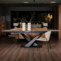 • Стол Леон LUX RADIAL 180, Дуб Веллингтон, Черный Черный | Дуб веллингтон
