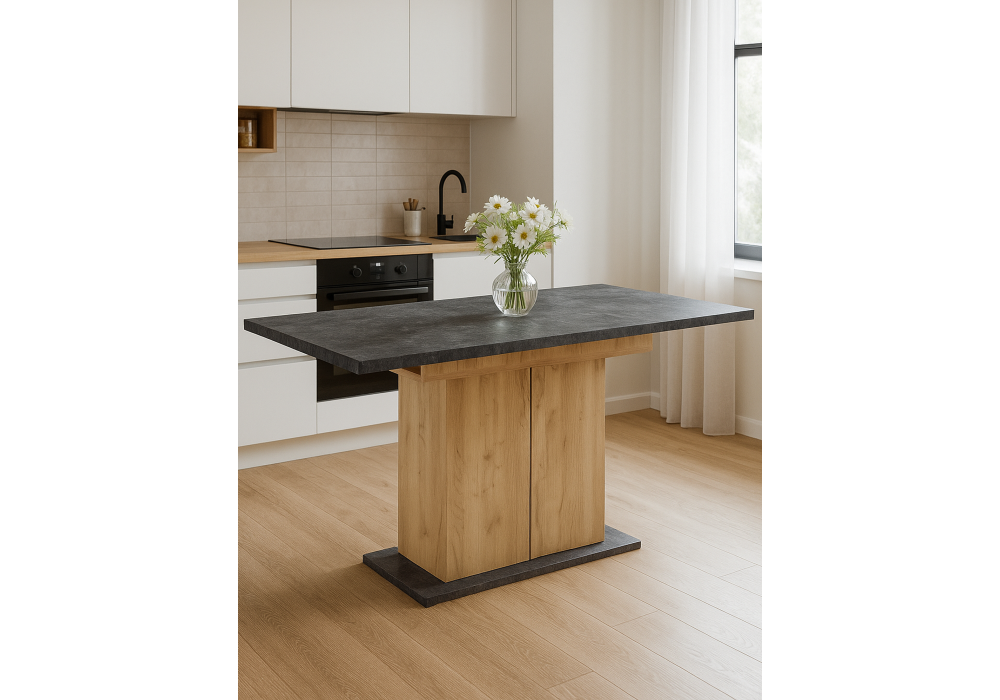 • Стол деревянный Carla крафт золотой - цемент темный - 2