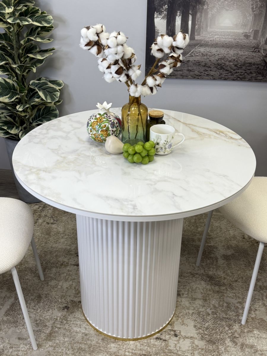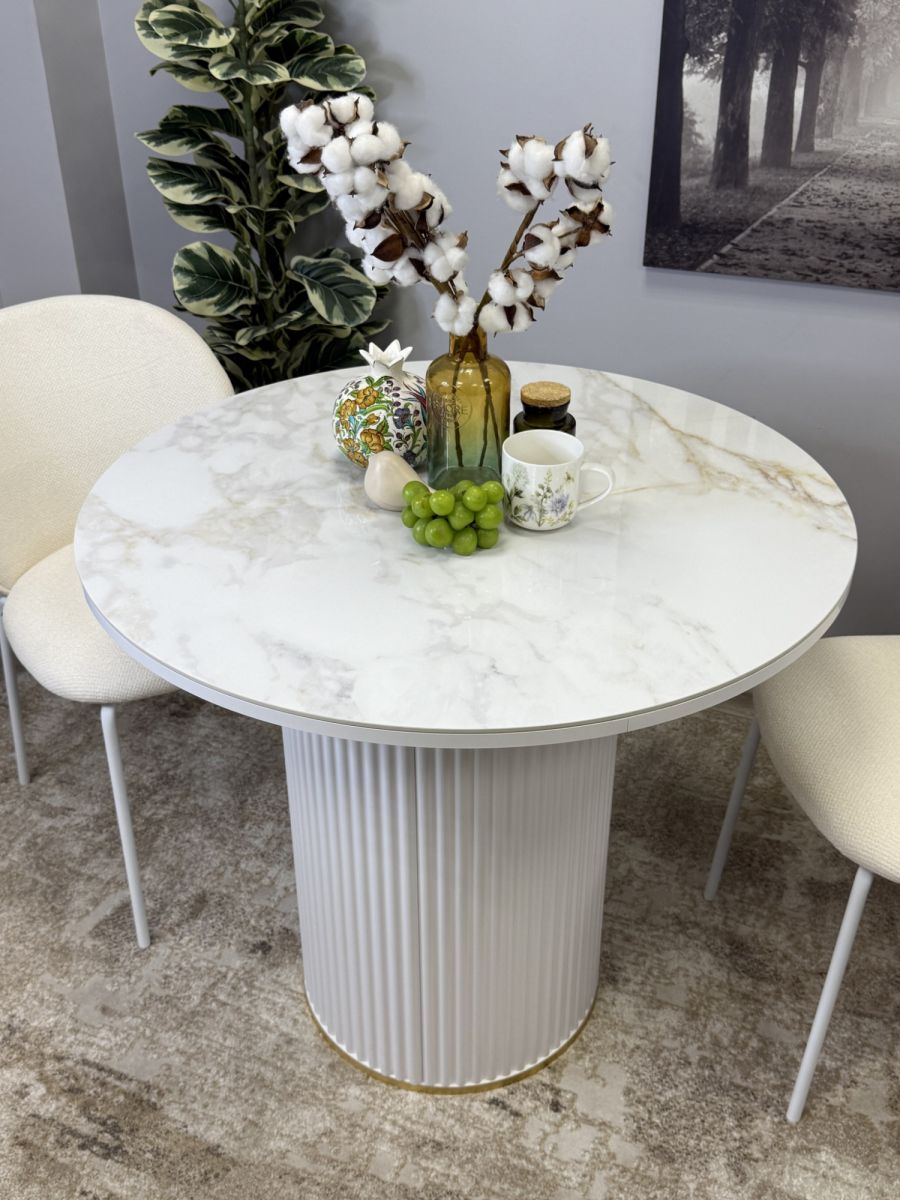 Элегантный стол без механизма трансформации. Отличается высокой устойчивостью и прекрасно сочетается с модными кухнями. Обеспечивает достаточно пространства для ног. Роскошная блестящая керамическая поверхность ОСНОВНЫЕ ПРЕИМУЩЕСТВА Глянцевая керамическая плитка очень привлекательна благодаря современному дизайну и яркому оформлению. Удобное расположение коленей обеспечивает комфорт при использовании изделия. Размер обеденного стола идеально подходит для четырех персон. Столешница премиум-класса Керамическая столешница устойчива к металлическим предметам, выдерживает до 1000°C и поддерживает свой первоклассный облик без изменений. Также она безопасна для аллергиков, позволяя размещать еду непосредственно на поверхности. Высокая надежность материалов Главная стойка изысканного вельветового узора гармонично дополняет кухонные фасады, минимизирует скопление пыли и упрощает уборку. Это изделие отличается высокой прочностью и долговечностью Цвет белый/керамика гра