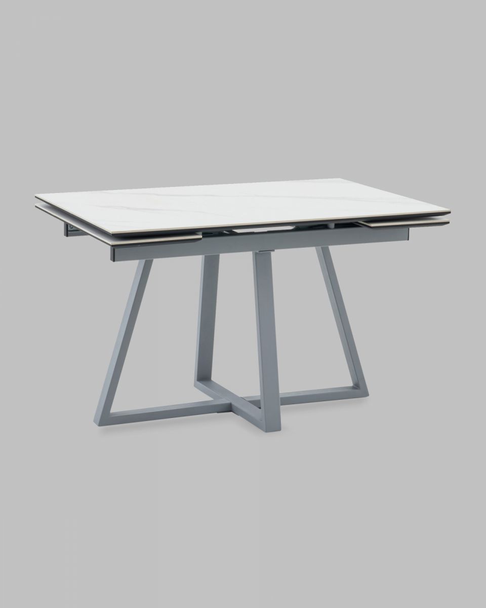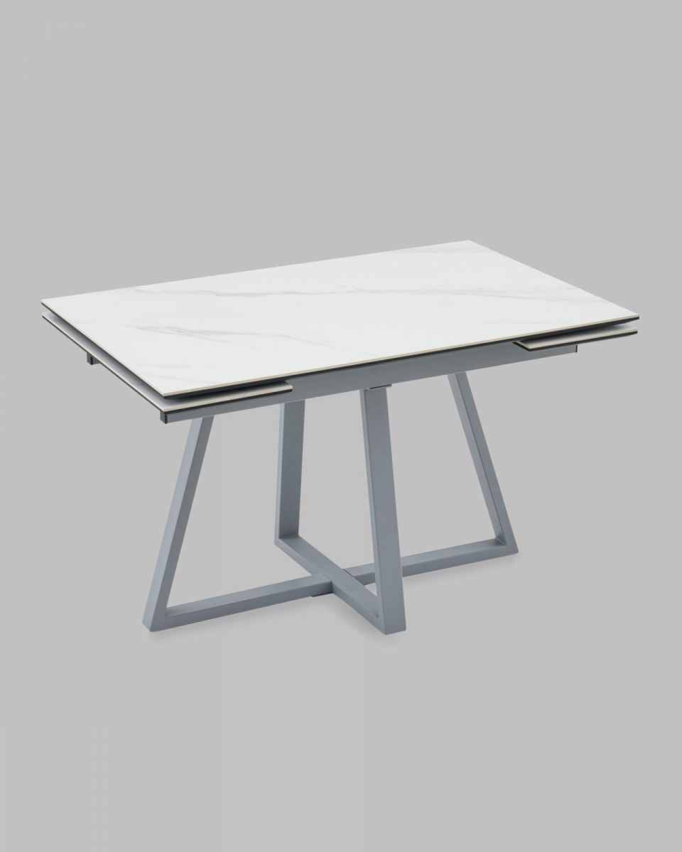 Стол Керас 120-180, 80, 75 столешница МДФ16, керамика Snow white подстолье металл серый
