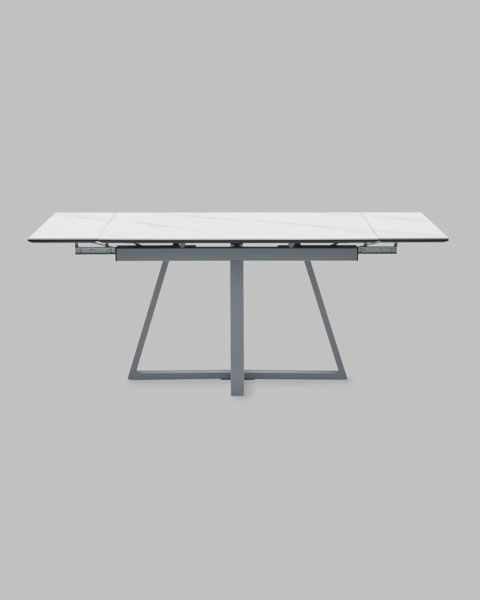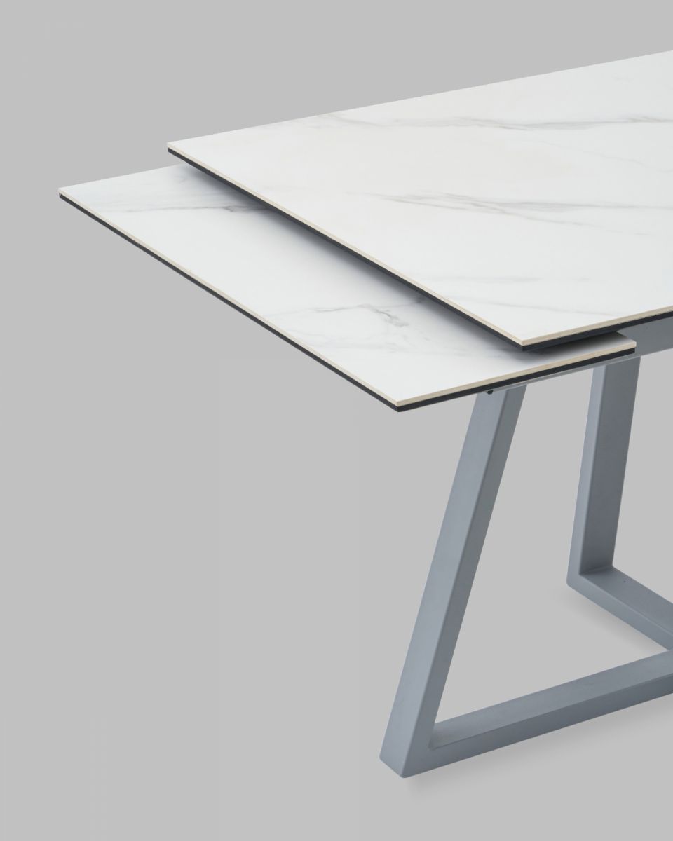 • Стол Керас 120-180, 80, 75 столешница МДФ16, керамика Snow white подстолье металл серый - 6