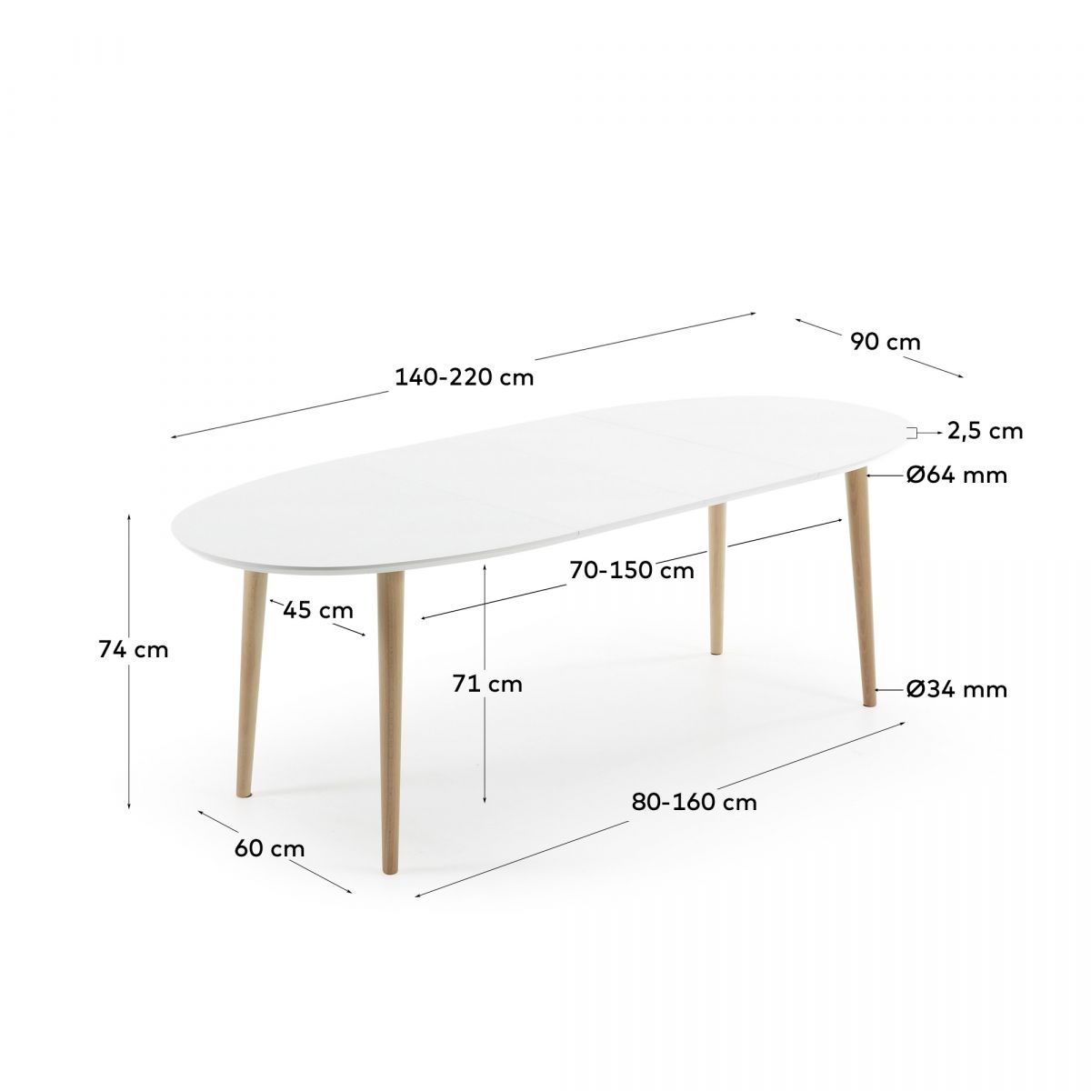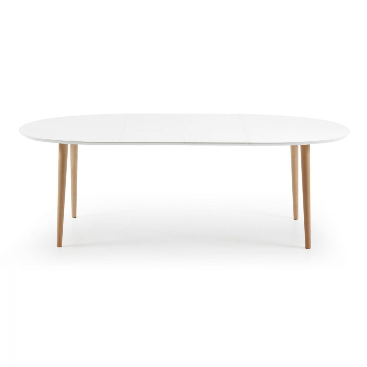 Стол Oakland из одноименной коллекции от фабрики La Forma (ex Julia Grup).Испанский стол Oakland сразу убеждает в том, что он подойдет практически для любой кухни или столовой, выполненной в современном урбанистическом стиле. В модели нет ничего оригинального, но зато главенствует высокое качество натуральных материалов, традиционный европейский дизайн и универсальный белый цвет.Данная модель создана из массива. Дерево — одновременно прочный и экологичный материал, поэтому стол также станет находкой для любителей скандинавского стиля. Дизайн простой — овальная столешница, окрашенная белой порошковой краской, и четыре конусообразные ножки, которым оставлен натуральный оттенок. Для защиты ножек от вредного воздействия влаги и загрязнений их покрыли бесцветным лаком.Стол предлагается разной длины — от 160 до 260 см. Но ширина столешницы для всех моделей одинаковая и составляет 60 см. Высота ножек — 74 см.Данная модель приходит в разобранном виде (ножки отдельно). Инструкция по сборке и кр
