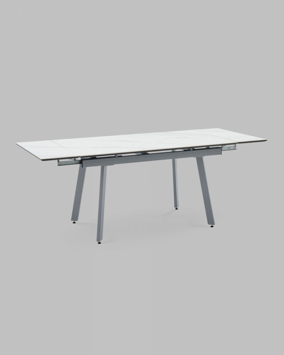 Стол Тайл 140-200, 85, 75 столешница Snow white подстолье металл серый