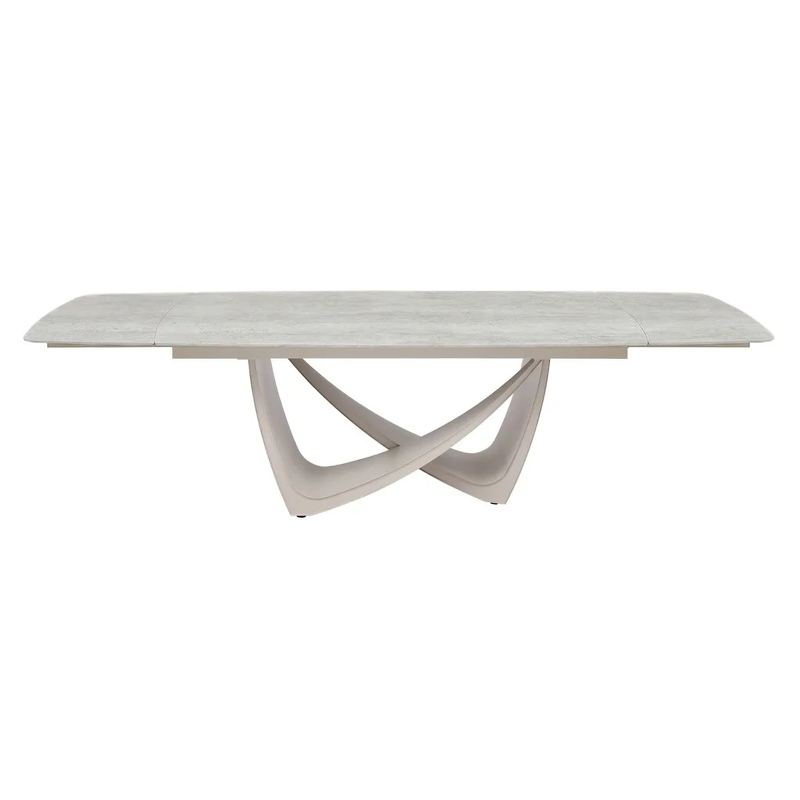 Обеденный стол TOLEDO от MOD INTERIORS — это не просто мебель. Это трансформер вашего пространства и ваших сценариев жизни. Его дизайн, в котором мощь современного искусства встречается с инженерной точностью, создан для тех, кто ценит и уединение, и гостеприимство. Стол является центром внимания в столовой. Его футуристичное основание из высококачественного металла с бежевым порошковым покрытием — это скульптура, на которой покоится идеально гладкая столешница из спеченного камня (12 мм). Этот материал невероятно прочен, стоек к царапинам и нагреву, а его матовая поверхность выглядит дорого и тактильно приятна. Но главная магия — в его универсальности. В базовом размере (200x100 см) это элегантный стол для повседневной жизни. С двумя дополнительными вставками по 50 см он превращается в внушительный банкетный стол длиной 3 метра, за которым с комфортом разместится большая компания. Скругленные углы добавляют безопасности и мягкости общему виду. Почему стол TOLEDO изменит ваше