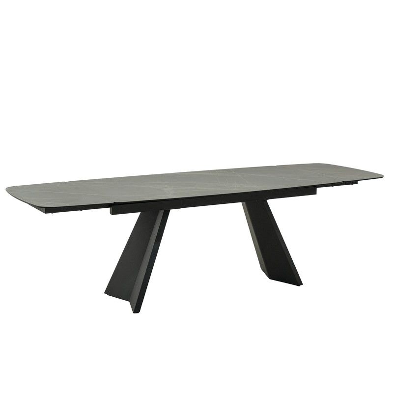 Раскладной обеденный стол от бренда Mod Interiors со скругленным углами, выполнен в современном стиле. Столешница - стеклокерамика: закаленное стекло (8 мм) и керамика (3 мм). Основание и ножки - высококачественный металл в отделке стойкой к внешним воздействиям порошковой краской черного цвета. Длина стола составляет 180 см, ширина стола - 90 см. Стол имеет две дополнительные вставки по 40 см, благодаря чему стол достигает 260 см длины и за ним может разместиться большое количество гостей.
