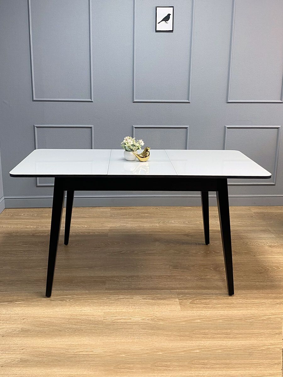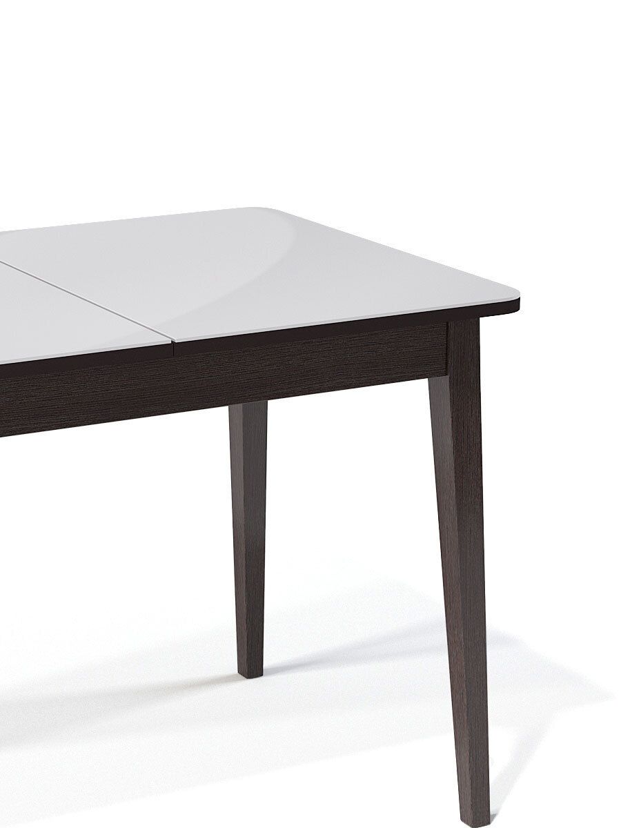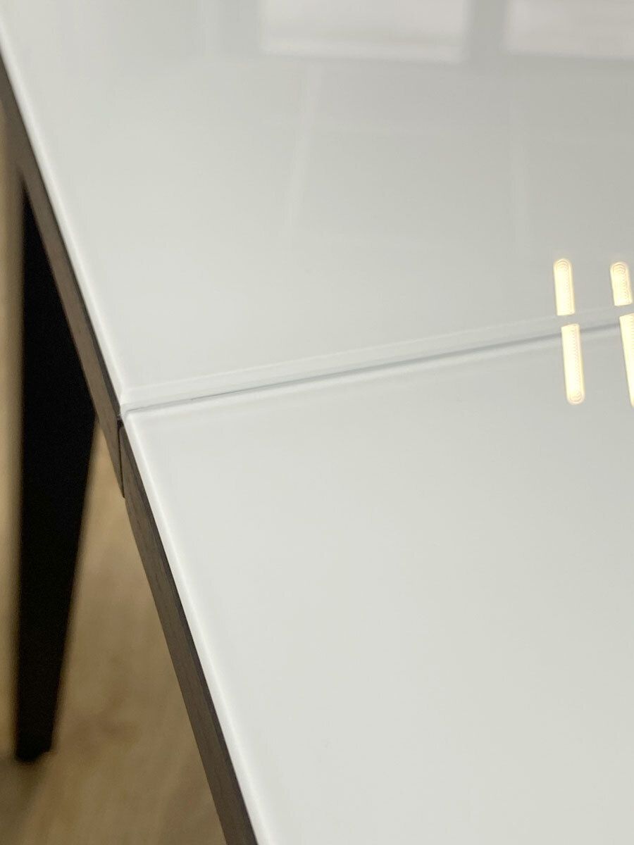 Стол обеденный KENNER K1100 цвет венге столешница - стекло белое. Самая функциональная форма стола из возможных. Стол можно поставить вплотную к стене по любому краю, царговый пояс позволяет поставить 2 стули шириной до 47см, широкая вставка со стеклом в цвет столешницы поможет вам удобно разместить еще 2 гостей.ОСНОВНЫЕ ПРЕИМУЩЕСТВА Компактный и очень функциональный стол, идеален для использования как на небольшой кухне, так и в качестве уютной обеденной зоны в гостиной. Столешница из стекла надежно защищает стол от влаги и горячего. Синхронный механизм раскладки позволяет легко раздвинуть стол одной рукой любому члену семьи. Вставка с материалом столешницы осталяет стол монолитным в разложенном состоянии. Стол максимально устойчив благодаря особому, усиленному креплению опор и регулировочным винтам. Столешница премиум-класса Стекло является оптимальным на сегодняшний день материалом для столешницы по соотношению цена-качество. КЕННЕР применяет дорогое, просветленное ст