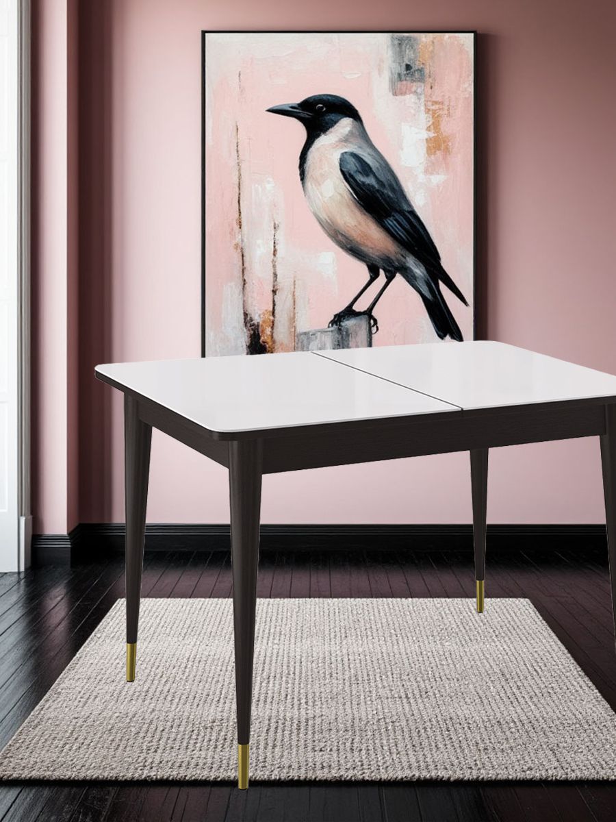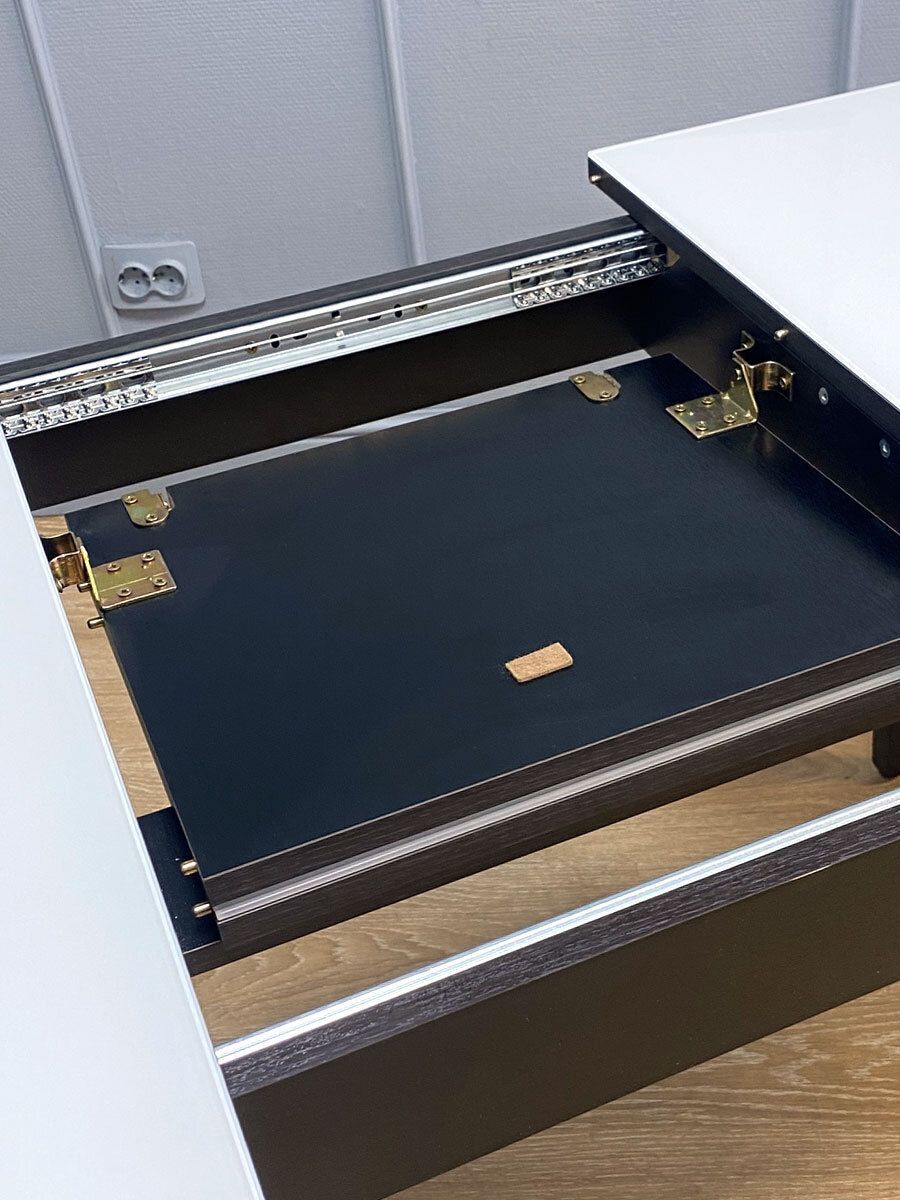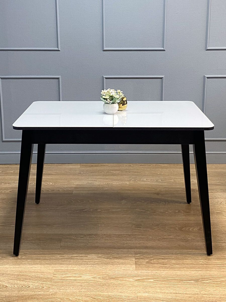 Стол обеденный KENNER K1100 цвет венге столешница - стекло белое. Самая функциональная форма стола из возможных. Стол можно поставить вплотную к стене по любому краю, царговый пояс позволяет поставить 2 стули шириной до 47см, широкая вставка со стеклом в цвет столешницы поможет вам удобно разместить еще 2 гостей.ОСНОВНЫЕ ПРЕИМУЩЕСТВА Компактный и очень функциональный стол, идеален для использования как на небольшой кухне, так и в качестве уютной обеденной зоны в гостиной. Столешница из стекла надежно защищает стол от влаги и горячего. Синхронный механизм раскладки позволяет легко раздвинуть стол одной рукой любому члену семьи. Вставка с материалом столешницы осталяет стол монолитным в разложенном состоянии. Стол максимально устойчив благодаря особому, усиленному креплению опор и регулировочным винтам. Столешница премиум-класса Стекло является оптимальным на сегодняшний день материалом для столешницы по соотношению цена-качество. КЕННЕР применяет дорогое, просветленное ст