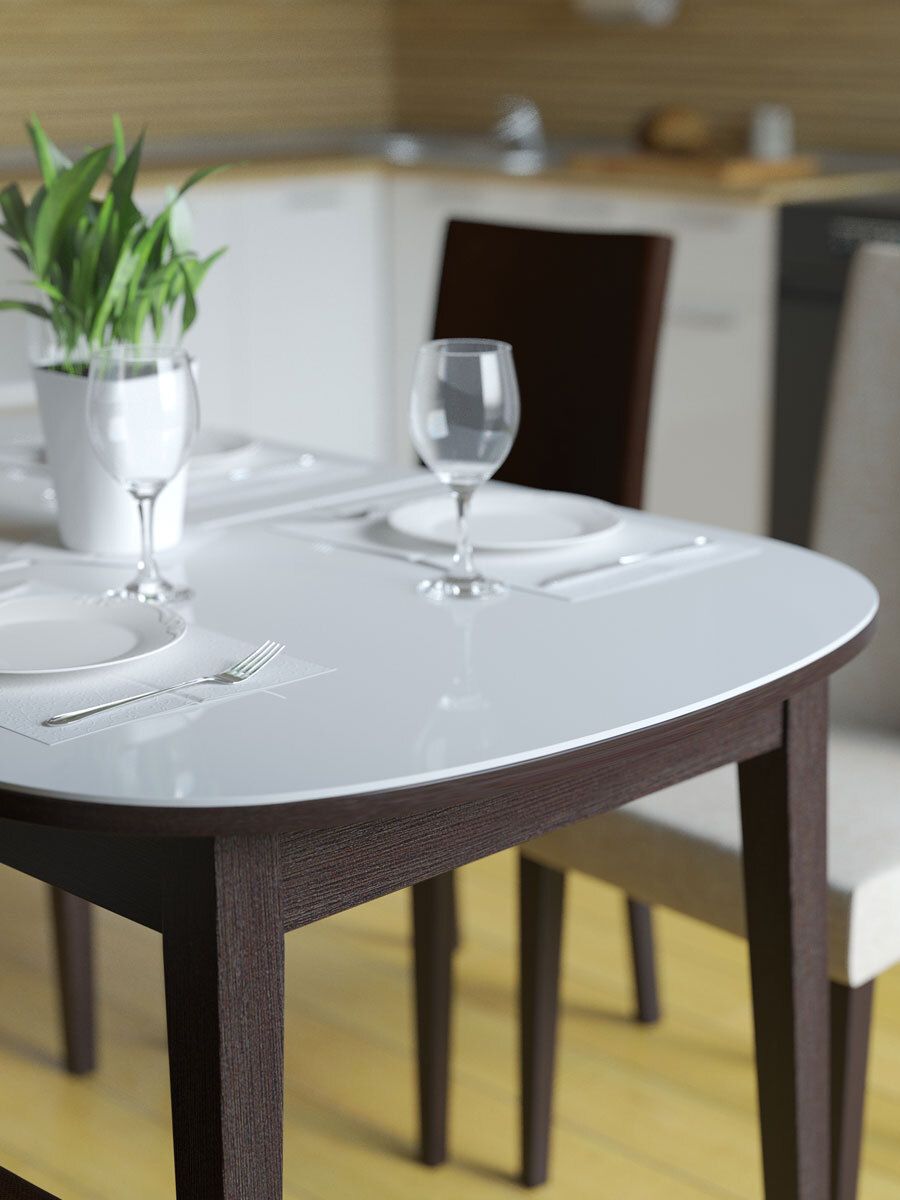 Стол KENNER 1300С цвет венге, столешница - стекло белое, сатин. Стильные, дизайнерские столы для дома. Фабрика "Кеннер". Гарантия качества. Быстрая доставка по РФ. Стол с классической формой столешницы и удобной геометрией (можно ставить вплотную к стене широкой стороной) и увеличенным местом для размещения по узким краям стола. В то же время все углы скруглены большим, травмобезопасным радиусом. Под столешницей места так же предостаточно. Можно разместить 2 стула шириной до 47см. Цвет венге/стекло белое Гарантия 24 месяца.