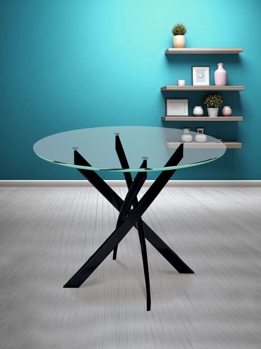 Стол круглый KENNER R1000, ножки - черные, стеклянная столешница. Стильные, дизайнерские столы для дома. Фабрика "Кеннер". Гарантия качества. Быстрая доставка по РФ. Интерьерный стол с толстой столешницей и надежным металлическим основанием. Полностью стеклянной столешнице не страшна влага или средства бытовой химии, ее тяжело повредить и разбить. Цвет черный/стекло прозрачное Гарантия 24 месяца.