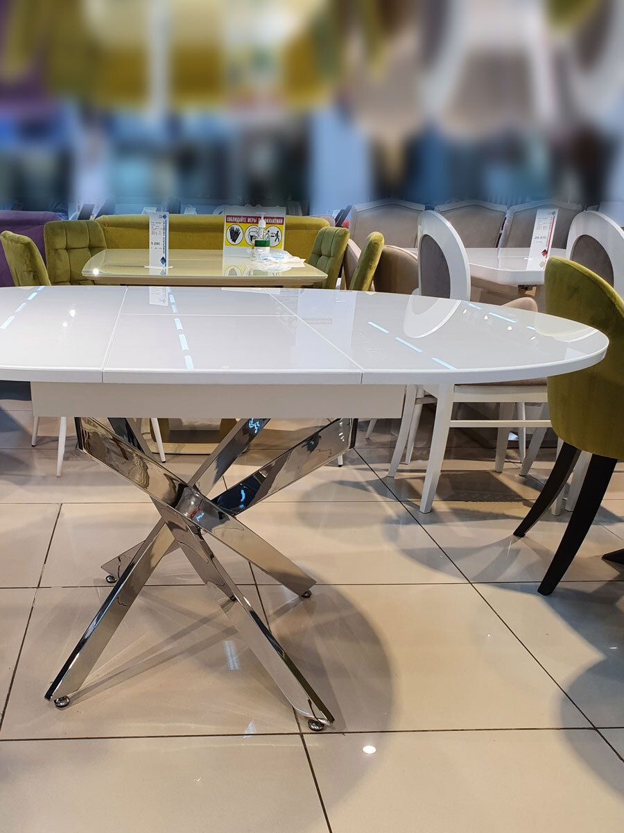 • Стол KENNER R1100 хром-стекло белое глянец - 9