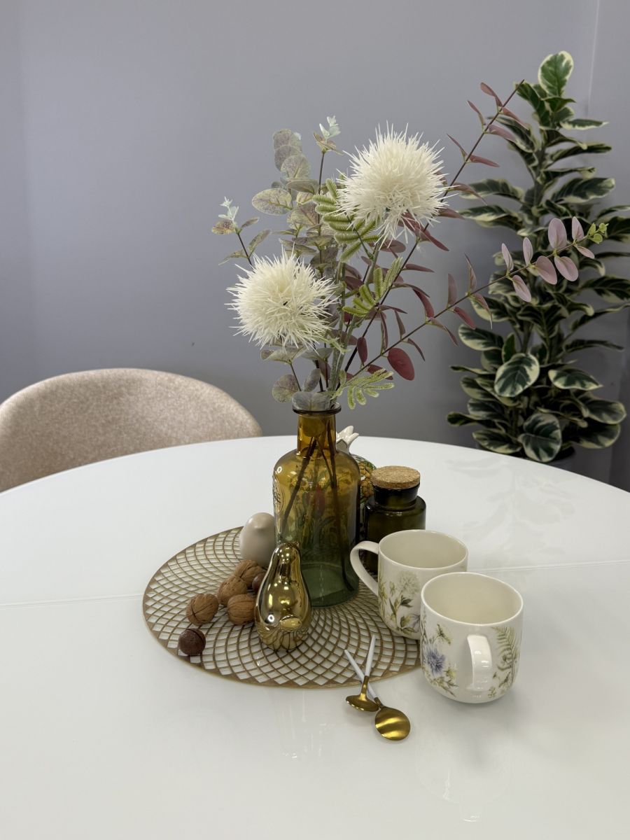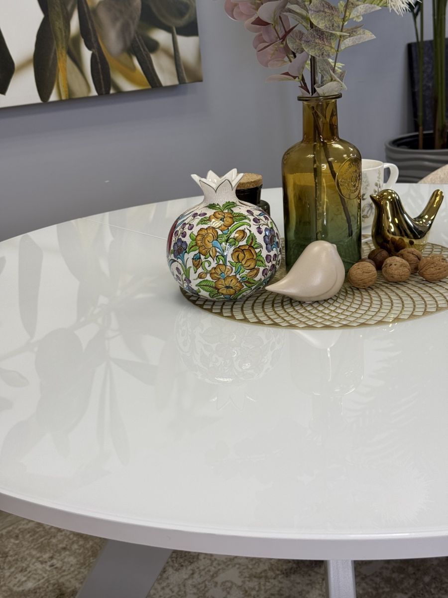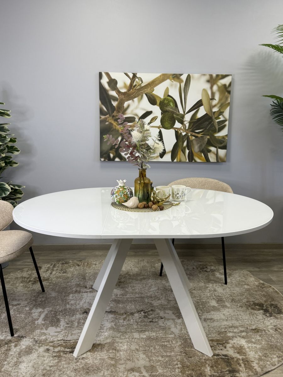 Стол KENNER RL1100 цвет белый, столешница - стекло белое, глянец. Стильные, дизайнерские столы для дома. Фабрика "Кеннер". Гарантия качества. Быстрая доставка по РФ. Стол на центральной опоре немного напоминает летающую тарелку. Это один из самых удобных круглых столов которые Вы можете купить в России. Широкий разлет опор позволяет поставить любые, самые широкие кресла к столу. Оптимальный размер позволяет удобно разместить 4 чел за столом в сложенном состоянии и 6-8 в разложенном. Толстая, надежная столешница и металлическая рама, которая позволяет работать механизму раскладки легко и четко как часы. ОСНОВНЫЕ ПРЕИМУЩЕСТВА  Круглый стол оптимального размера. Диаметр 1100мм позволяет и комфортное размещение 4 человек для постоянного использования и организацию места для гостей и при этом стол не занимает много места.   Столешница премиум-класса Круглая столешница диаметром 1100мм смотрится солидно и очень качественно выполнена. Толщина столешницы 36мм, поверхность за