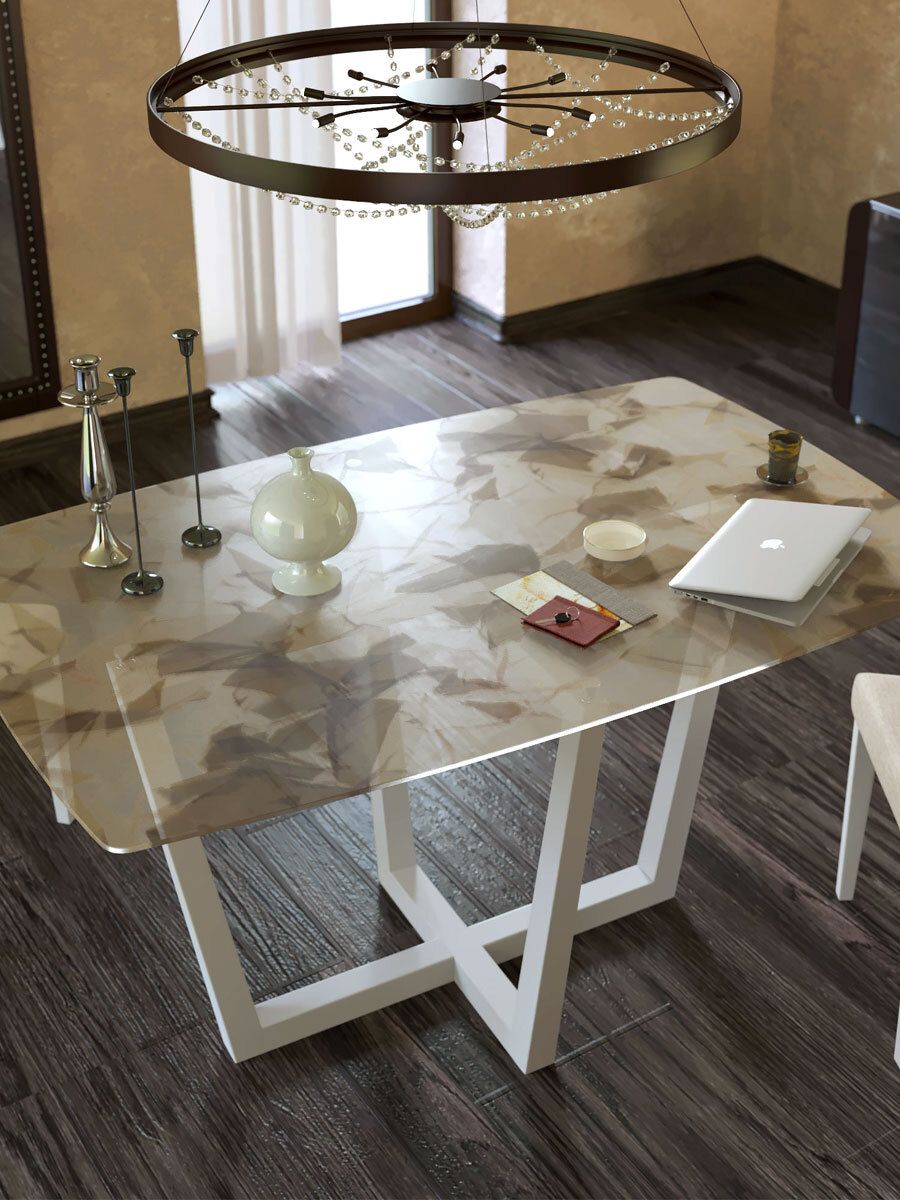 Стол KENNER X1400 белый-стекло триплекс листья - 2Стол KENNER X1400 белый-стекло триплекс листья - 3Стол KENNER X1400 белый-стекло триплекс листья - 4