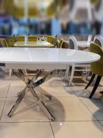 Стол Дрезден -ЛДСП,Стекло-130(161,5)*80*75-Белый мат шагрень-Белый-: