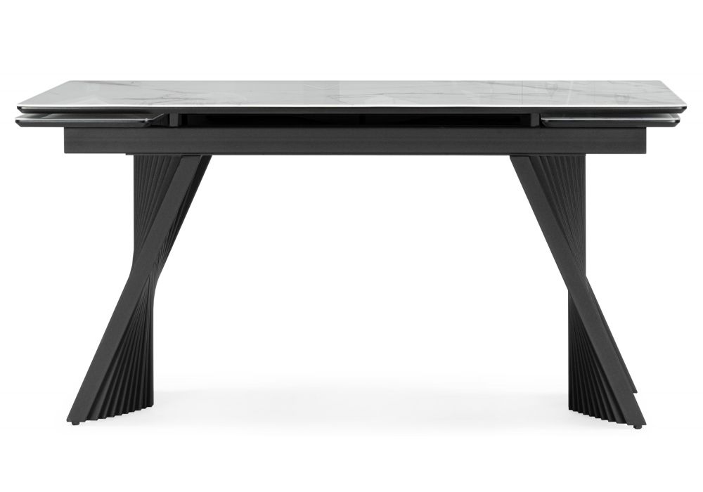 Стол стеклянный Вейв 140(200)х80 кристл белый мрамор - черный