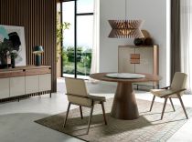 • Стол обеденный BOSCO (Боско) основание бук, столешница мдф, D900, Белый + Коричневый