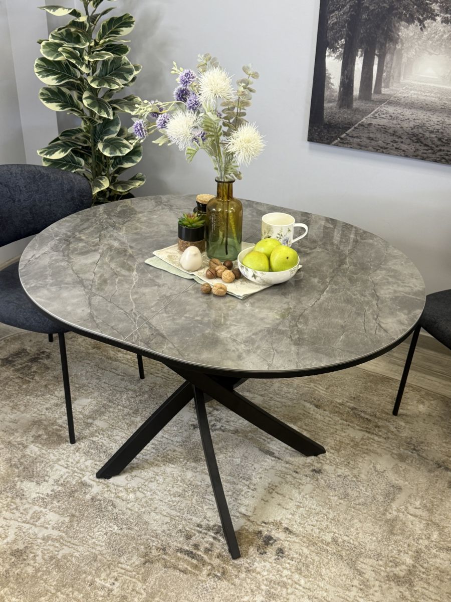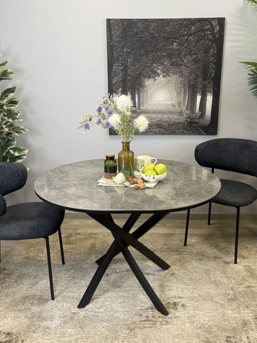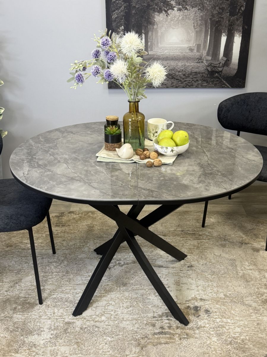 Ключевой особенностью этого стола является керамическая поверхность диаметром 100 см и долговечным, стабильным основанием. Дополняет комплект вставка на 30 см, расширяющая площадь стола.ОСНОВНЫЕ ПРЕИМУЩЕСТВА Стол сконструирован так, чтобы идеально подходить семье из трех-четырех человек. Керамическая столешница устойчива к воздействию различных домашних неприятностей. Благодаря керамической вставке есть возможность увеличивать размер стола при необходимости. Столешница премиум-класса Керамическая продукция толщиной 5,6 мм отличается высокой стойкостью к царапинам, способна выдержать экстремально высокие температуры, обладает водоотталкивающими свойствами и устойчивостью к воздействию бытовой химии, а также сохраняет свой первоначальный цвет на протяжении всего срока эксплуатации. Высокая надежность материалов Центральное основание спроектировано так, чтобы не создавать помех при посадке. Столешница надежно закреплена и обеспечивает стабильность конструкции.
