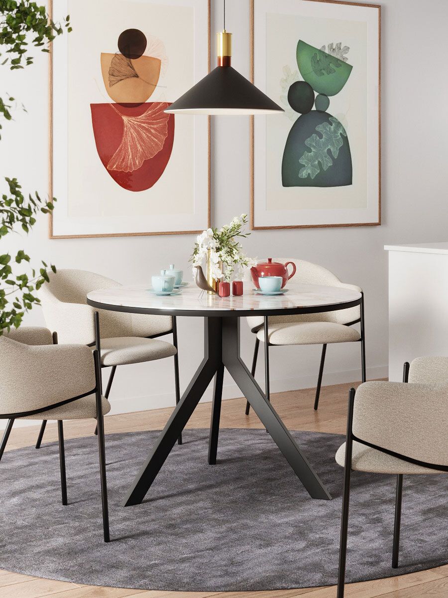 • Стол KENNER RR900 черный-керамика мрамор белый глянец - 7