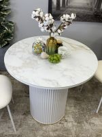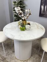 Керамический стол Тулип 90х73 белый мрамор - золото:
