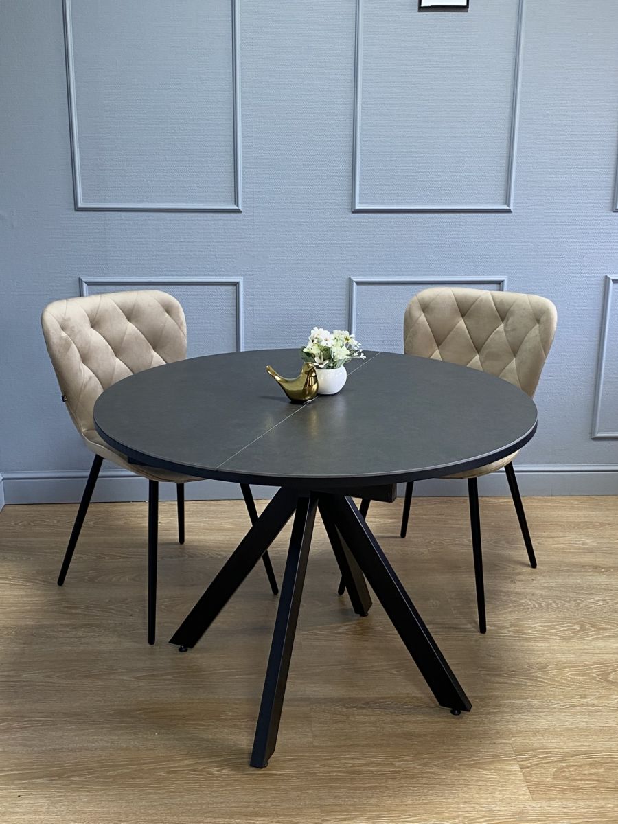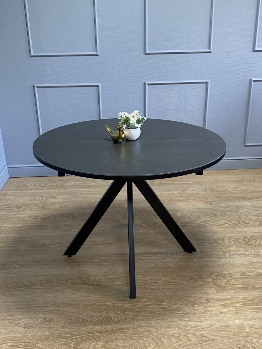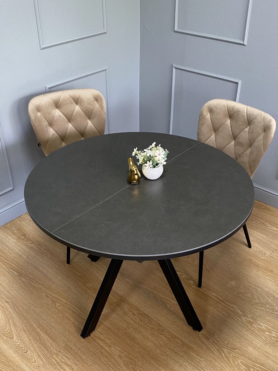 Круглый стол с керамикой по настолько хорошей цене - это уникальное предложение! Керамика защищает стол от любого внешнего воздействия, а ножки выполнены настолько эргономично, что к столу удобно сесть с любой стороны  ОСНОВНЫЕ ПРЕИМУЩЕСТВА Стол очень компактный, размещается в любом месте и не занимает пространство кухни. Больше места для вас и вашей семьи. Столешница премиум-класса Керамика - наилучший и самый дорогой материал для обеденного стола. Она не портится от влаги, выдерживает температуру до 1000°С. Плотность керамики выше плотности металла и на ней не останутся следы от столовых приборов. Кроме того это 100% натуральный материал в отличие от разного вида пластиков. z Высокая надежность материалов Опоры данного стола - легкие, практически не занимают места и при этом удобны для использования как с кухонных уголком, так и со стульями. Цвет черный/керамика темно-серая Гарантия 24 месяца.