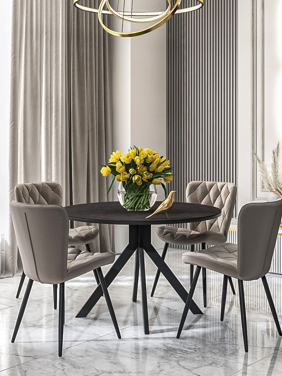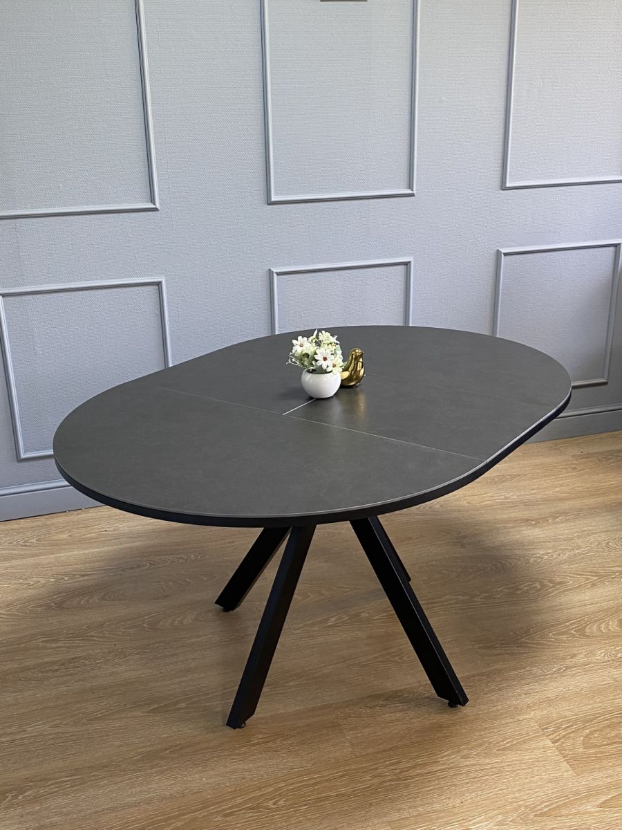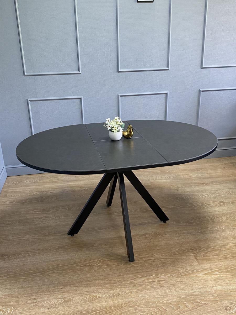 Круглый стол с керамикой по настолько хорошей цене - это уникальное предложение! Керамика защищает стол от любого внешнего воздействия, а ножки выполнены настолько эргономично, что к столу удобно сесть с любой стороны  ОСНОВНЫЕ ПРЕИМУЩЕСТВА Стол очень компактный, размещается в любом месте и не занимает пространство кухни. Больше места для вас и вашей семьи. Столешница премиум-класса Керамика - наилучший и самый дорогой материал для обеденного стола. Она не портится от влаги, выдерживает температуру до 1000°С. Плотность керамики выше плотности металла и на ней не останутся следы от столовых приборов. Кроме того это 100% натуральный материал в отличие от разного вида пластиков. z Высокая надежность материалов Опоры данного стола - легкие, практически не занимают места и при этом удобны для использования как с кухонных уголком, так и со стульями. Цвет черный/керамика темно-серая Гарантия 24 месяца.