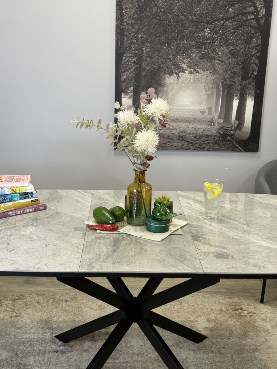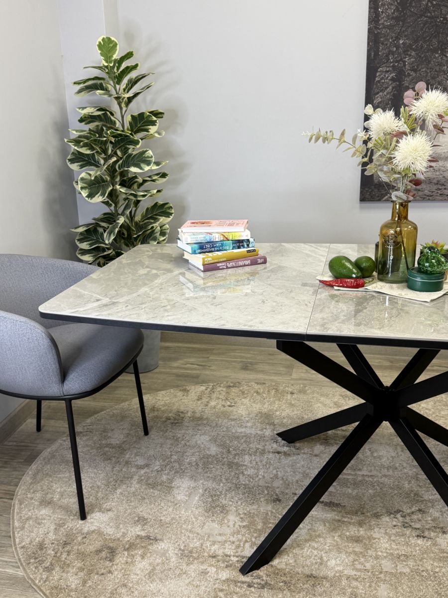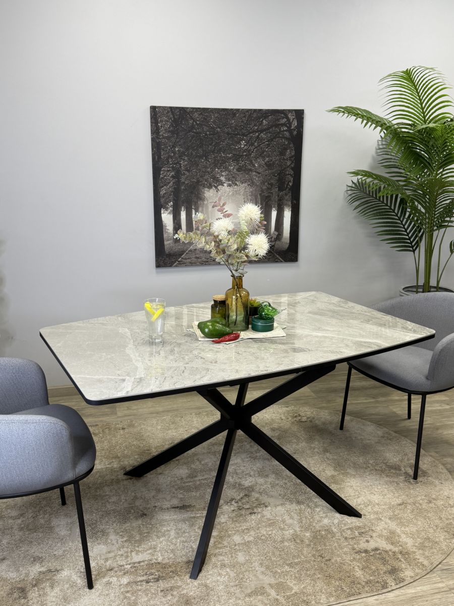 Cтильный прямоугольный стол с высококачественной керамической столешницей и надежными опорамиОСНОВНЫЕ ПРЕИМУЩЕСТВА Большой, роскошный, удобный и очень практичный стол с оптимальной формой столешницы и очень надежным основанием Столешница премиум-класса Керамическая столешница без швов упрощает уборку и использование. Высокая плотность материала исключает повреждения от посуды, выдерживая до 1000°C. Натуральное происхождение гарантирует устойчивость к влаге и долговечность – преимущества перед пластиковыми аналогами. Высокая надежность материалов У стола KENNER BR1400 максимально удобная центральная опора. Сидящие разместятся с комфортом в любом месте столешницы - будь то середина или края стола   Цвет черный/керамика мрамор белый Гарантия 24 месяца.