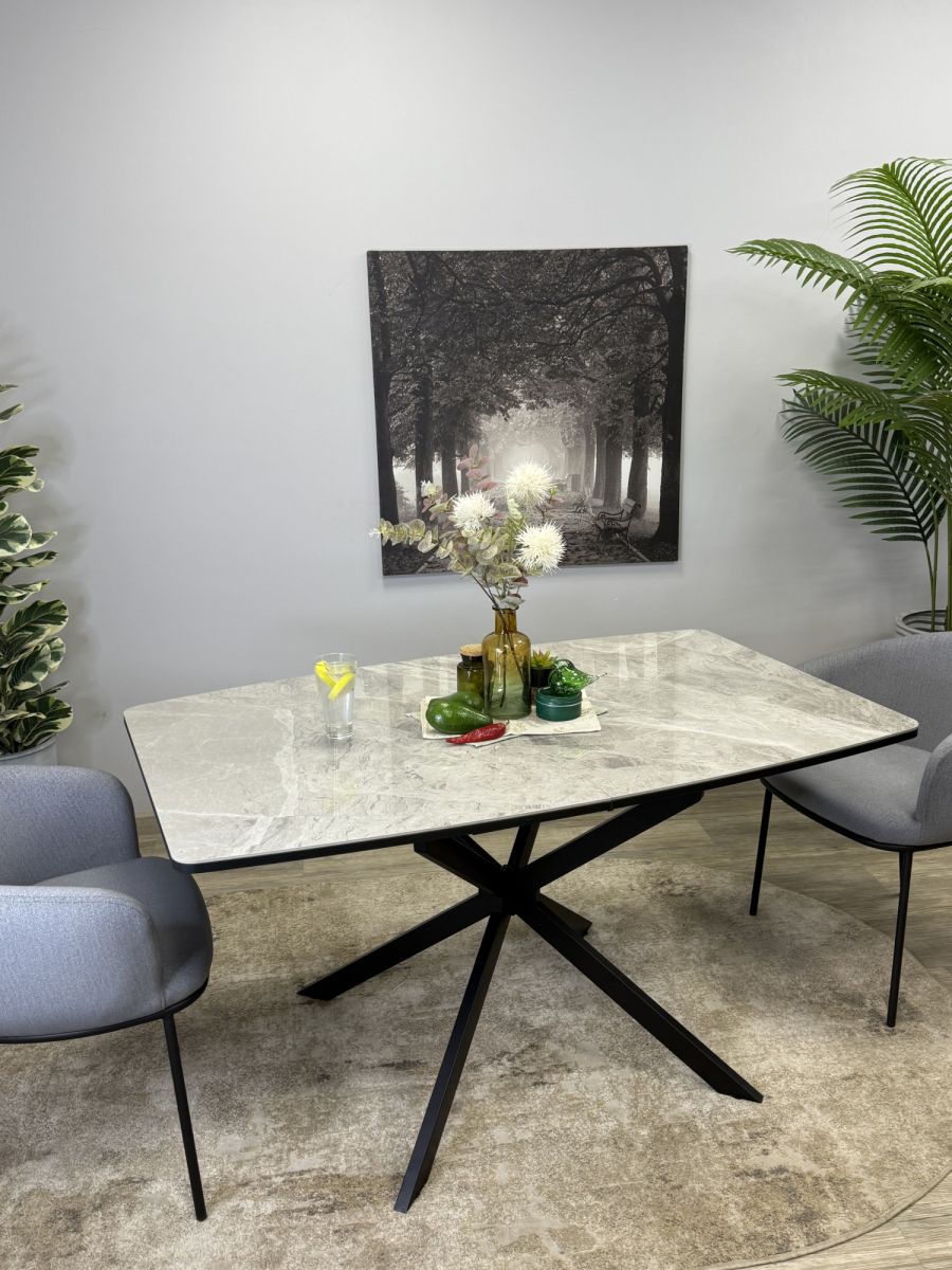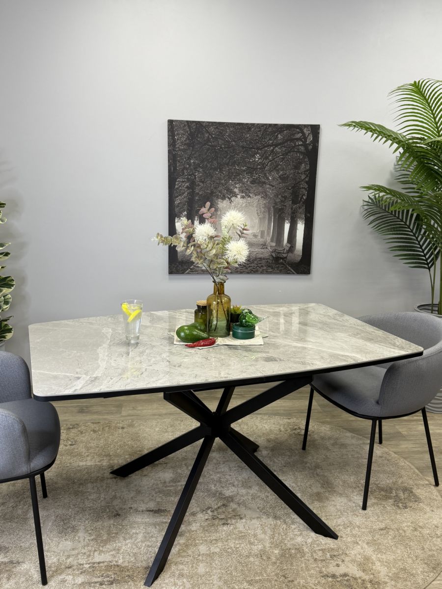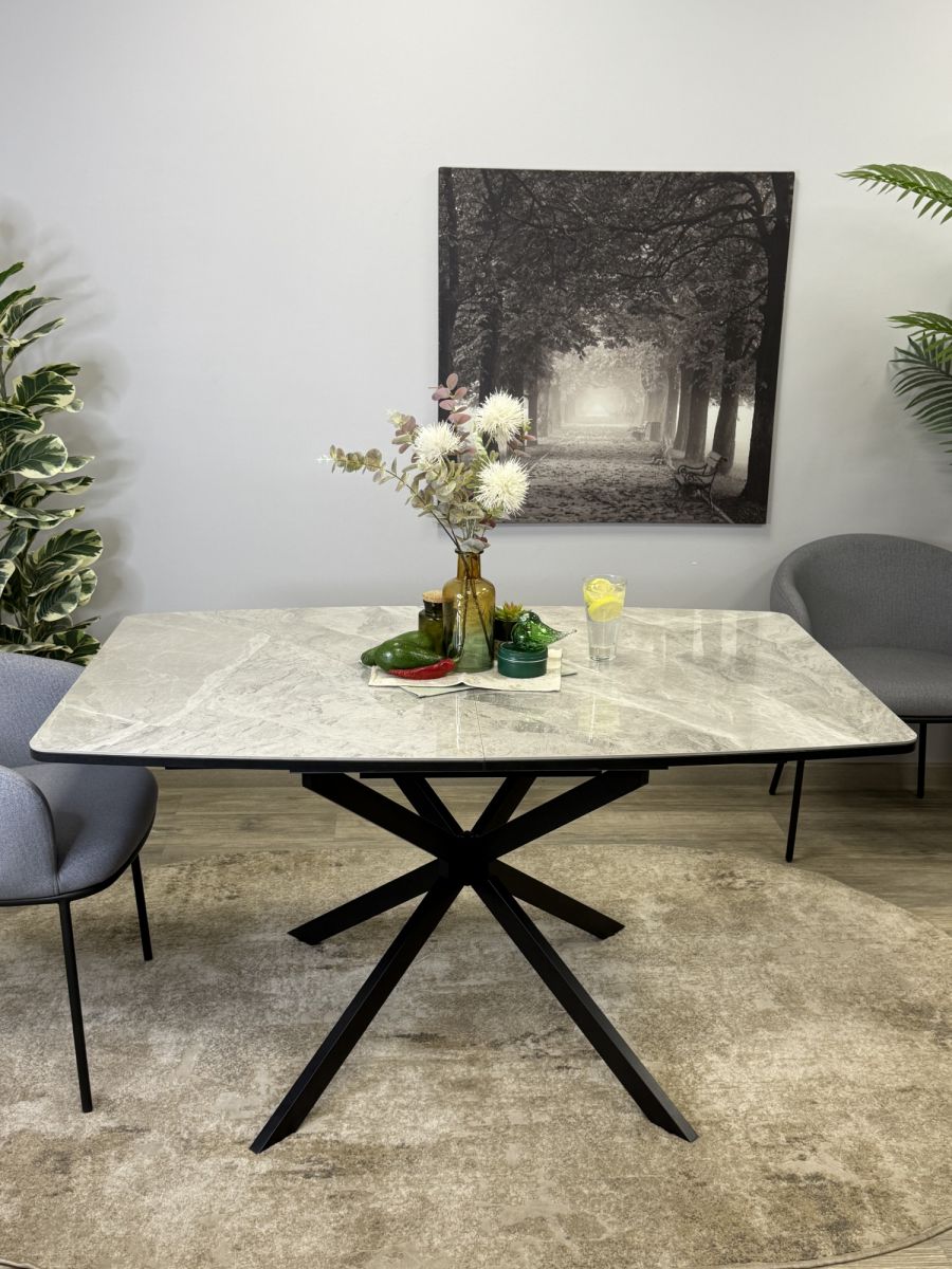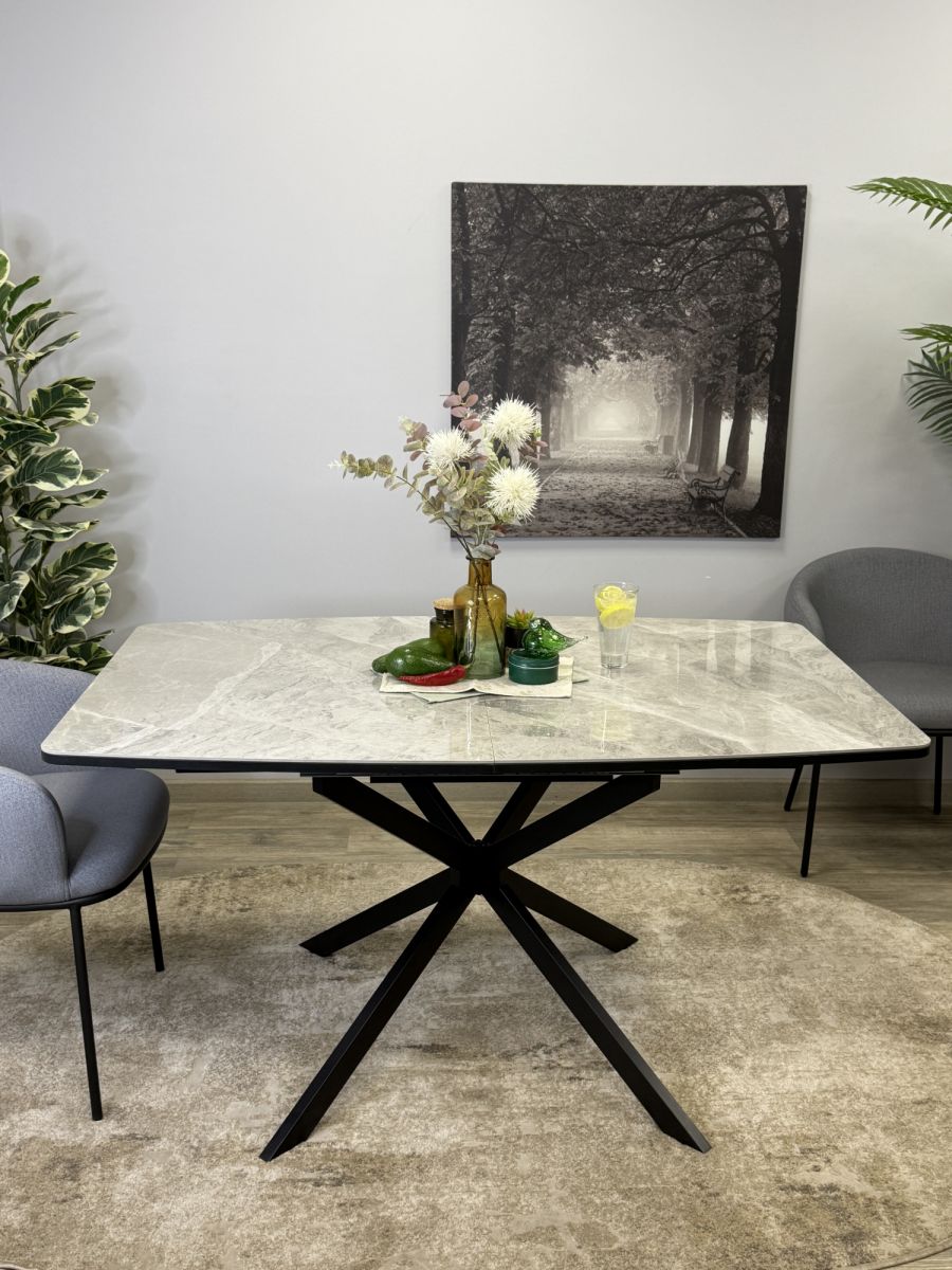 Cтильный прямоугольный стол с высококачественной керамической столешницей и надежными опорамиОСНОВНЫЕ ПРЕИМУЩЕСТВА Большой, роскошный, удобный и очень практичный стол с оптимальной формой столешницы и очень надежным основанием Столешница премиум-класса Керамическая столешница без швов упрощает уборку и использование. Высокая плотность материала исключает повреждения от посуды, выдерживая до 1000°C. Натуральное происхождение гарантирует устойчивость к влаге и долговечность – преимущества перед пластиковыми аналогами. Высокая надежность материалов У стола KENNER BR1400 максимально удобная центральная опора. Сидящие разместятся с комфортом в любом месте столешницы - будь то середина или края стола   Цвет черный/керамика мрамор белый Гарантия 24 месяца.