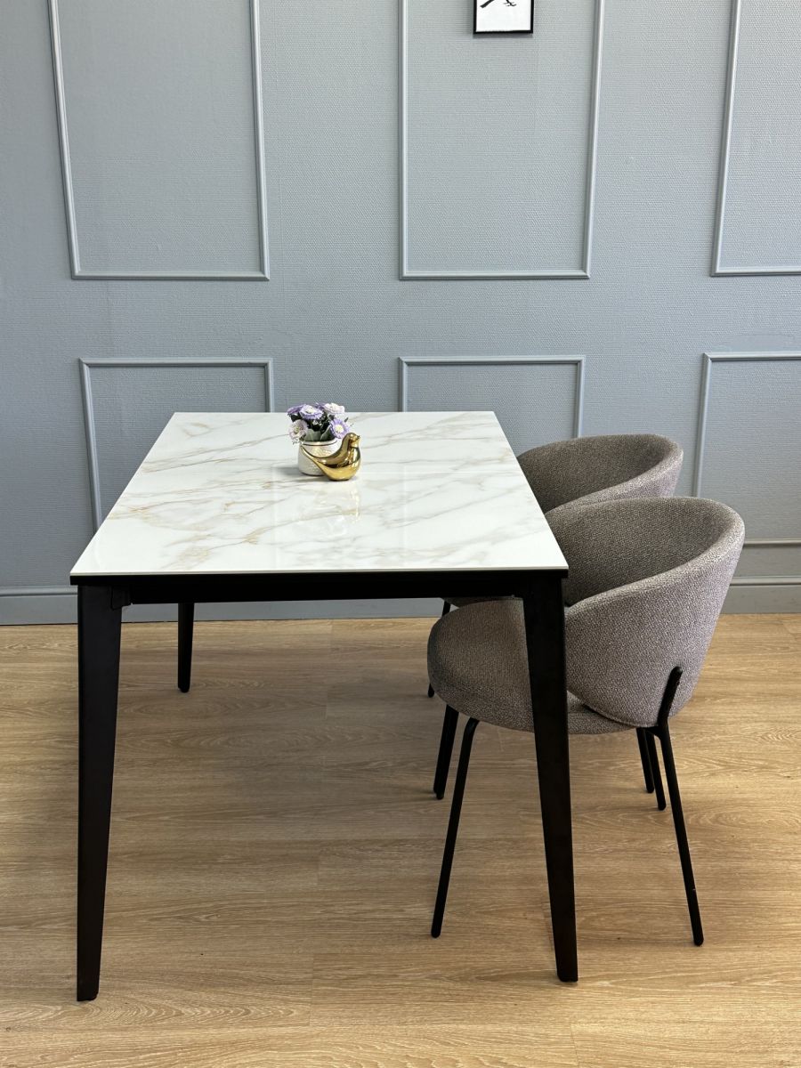 Стол KENNER KR1200 черный-керамика мрамор белый глянец