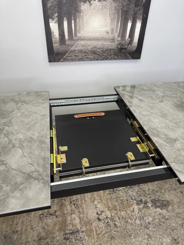 • Стол KENNER KR1400 черный-керамика мрамор серый глянец - 8