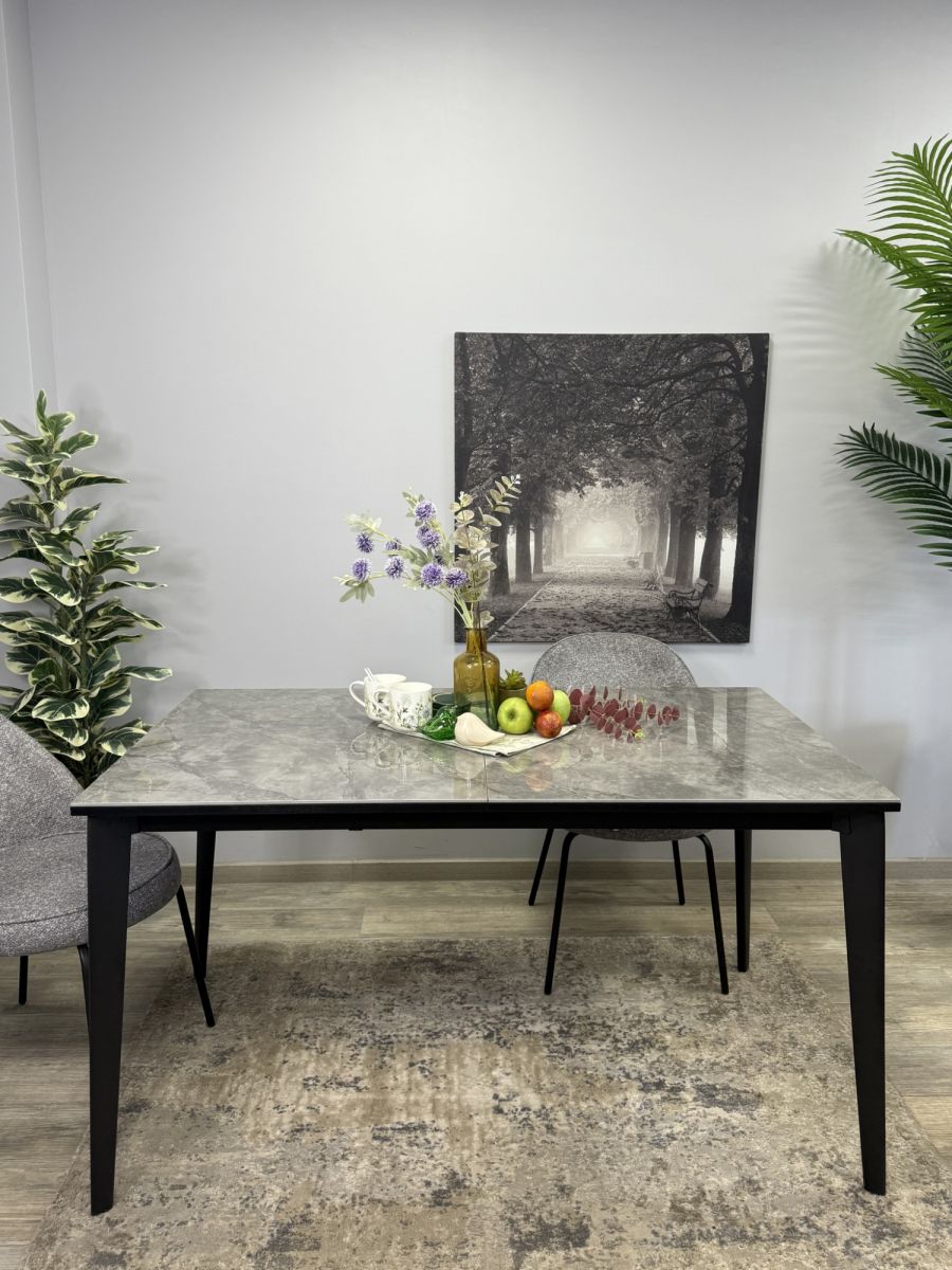 5. Стол KENNER KR1400 черный-керамика мрамор серый глянец