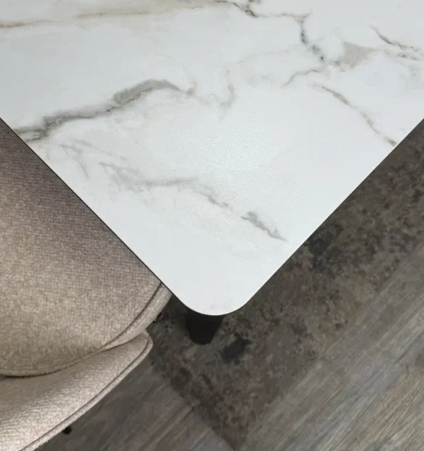 По настоящему немецкий стол, выполненный в сдержанном стиле и обладающий максимальной функциональностью. С его большой раскладной системой и увеличенной полезной площадью столешницы он идеально подходит для любых задач. Керамическая поверхность устойчива к царапинам, не выцветает со временем и не впитывает влагу, сохраняя безупречный вид на долгие годы. ОСНОВНЫЕ ПРЕИМУЩЕСТВА Тонкая и изящная рама стола обеспечивает комфорт даже при сидении "нога на ногу", а опоры, расположенные по краям, не создают помех для гостей. Скругленные края столешницы с травмобезопасным радиусом делают стол безопасным и удобным для всей семьи. Столешница премиум-класса Керамика - это идеальный вариант для тех, кто ценит качество и безопасность. Стол из этого материала будет служить вам долгие годы благодаря своей устойчивости к воздействию воды и высоких температур (до 1000°C).  Помимо выше перечисленного, керамика является абсолютно гип аллергенным материалом, поэтому вы можете быть уверены в безопасно